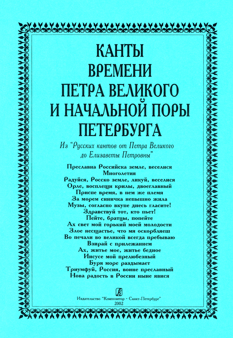 Канты времени Петра Великого и начальной поры Петербурга. Из «Русских кантов» от Петра Великого до Елизаветы Петровны электронный вариант, печать на заказ, для заказа, пожалуйста, напишите нам: marketcompozitor.spb.ru