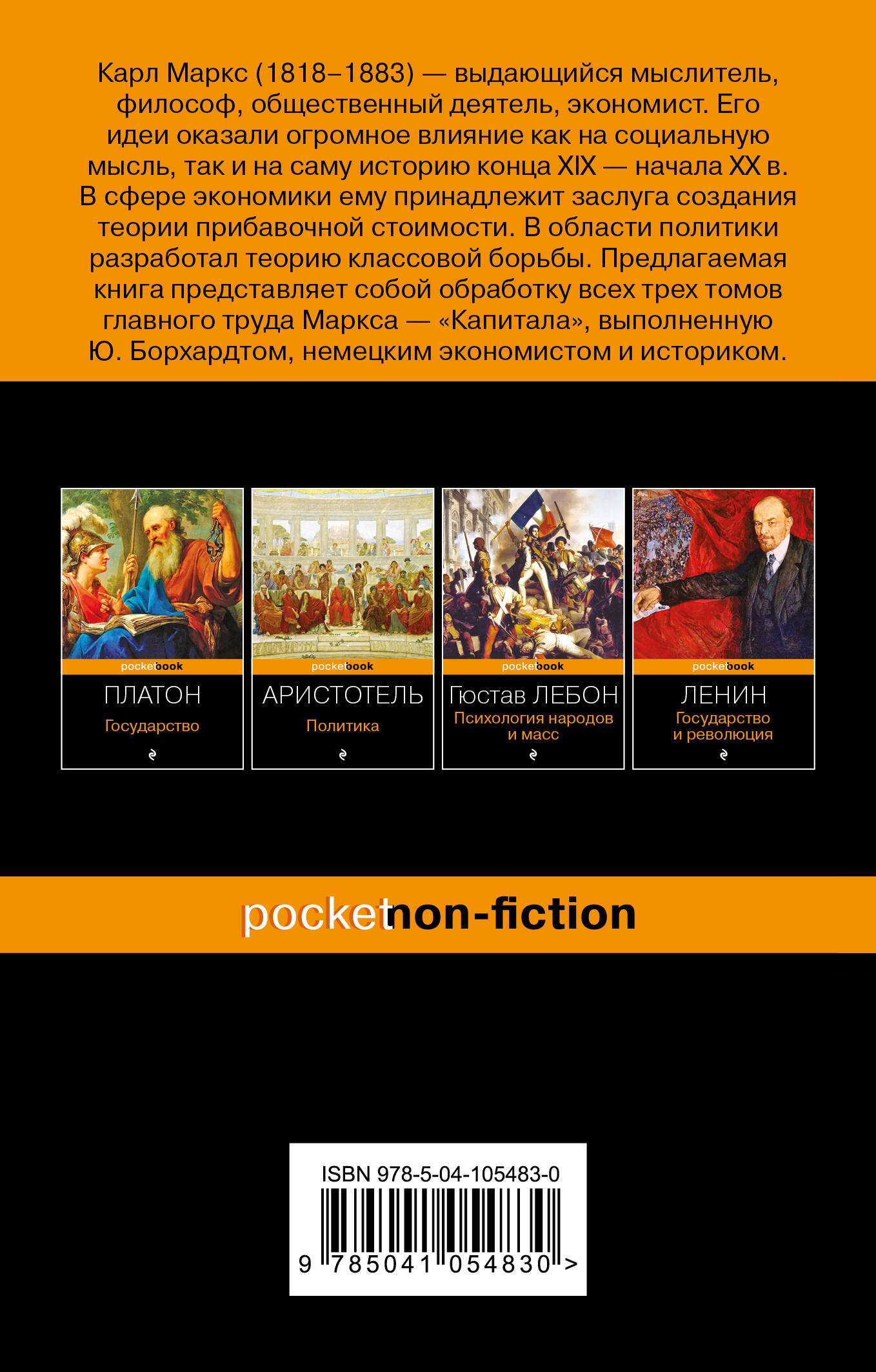 Карл Маркс (1818-1883) - выдающийся немецкий политический мыслитель, общественный деятель, экономист. Его идеи оказали огромное влияние как на на социальную мысль, так и на саму историю конца XIX-XX вв. Выступил основоположником принципов исторического и диалектического материализма. В сфере экономики ему принадлежит заслуга создания теории прибавочной стоимости. В области политики разработал теорию классовой борьбы. Вместе с Ф. Энгельсом создал цельное политическое, экономическое и философское учение, названное в его честь марксизмом. Чтобы каждый с большим удобством мог прочесть главный труд Маркса, немецкий экономист и историк Ю. Борхардт выполнил обработку всех его трех томов. Форма, в которой он передал теорию, с одной стороны, дает верное воспроизведение ее смысла и содержания, а с другой - ключ к ее пониманию.| Издательство | ООО "Издательство "Эксмо" |