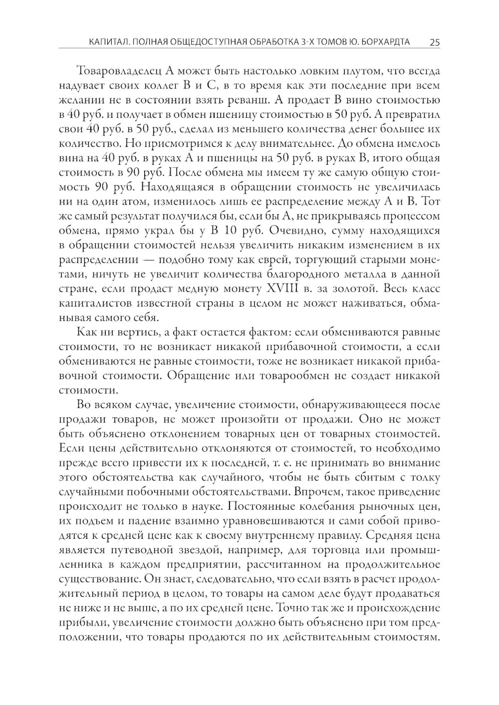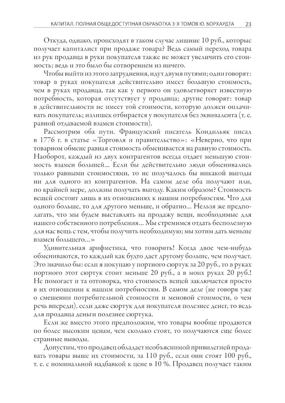 Мировые экономические проблемы начала ХХI века не случайно породили на Западе среди самых разных слоев населения всплеск интереса к марксизму и к «Капиталу» Карла Маркса, ведь это фундаментальное сочинение дает ответ на ставший таким животрепещущим вопрос - отчего экономику капиталистического мира с печальной регулярностью сотрясают кризисы. Маркс видел их причину в перепроизводстве, наглядную демонстрацию которого можно увидеть в любом современном супермаркете. Однако содержание «Капитала» шире. Маркс дает в нем всесторонний анализ экономических процессов, происходящих в капиталистическом обществе. Неслучайно первым иностранным изданием «Капитала» стал его перевод на русский язык, ведь в конце XIX века эти процессы в России развивались с феноменальной скоростью. По широте и глубине охвата материала с «Капиталом» пока не может сравниться ни одно современное экономическое исследование. Однако в этом кроется и определенная трудность. Освоить три тома «Капитала» неподготовленному читателю нелегко. К тому же сам Маркс откровенно признавал свой стиль изложения «тяжелым». Читать «Капитал» в оригинале также непросто, как, скажем, современные научные статьи по квантовой механике или молекулярной биологии. Для понимания таких текстов неспециалистами нужен талантливый популяризатор. Таким человеком в Германии стал живший на рубеже XIX и ХХ веков политик и журналист Юлиан Борхардт. В юности он познакомился с работой денег не по книжкам - после школы несколько лет занимался торговлей в Берлине. Позже Юлиан стал блестящим преподавателем экономики и одним из основателей Союза пролетарских революционных писателей. Борхардт прекрасно сознавал и ценность труда Маркса, и необходимость его адаптации для широких слоев населения. Писательский талант, преподавательские способности и собственный жизненный опыт позволили ему сжать три тома «Капитала» до объема отдельной книги, не потеряв при этом ни одной мысли самого Маркса. Книга Борхардта впервые была издана в Германии в 1920 году и за одиннадцать последующих лет выдержала семь переизданий, доказав свою значимость и востребованность. Не потеряла она своей актуальности и в наши дни. В предисловии к своему труду Борхардт подчеркивает, что «Капитал» Маркса не излагает абсолютно законченное и неизменное учение. Вместе с тем, без изучения приведенных в «Капитале» основ невозможно полноценно осваивать и оценивать современные экономические теории. Данная книга, украшенная иллюстрациями из первого французского издания «Капитала», дает прекрасную возможность познакомиться с этими основами.| Издательство | СЗКЭО |