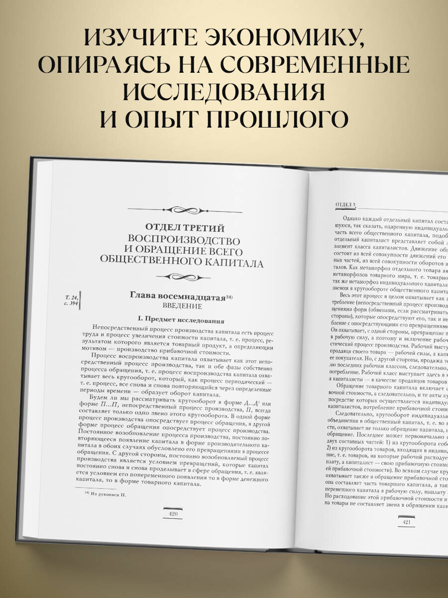 Издание II тома продолжает публикацию « Капитала » Карла Маркса. В нем читатель найдет теорию кругооборота вещественных форм капитала, знаменитые схемы общественного воспроизводства, а также интересные рассуждения о закономерностях обращения капитала в условиях капиталистического способа производства. При работе над изданием был учтен опыт как классических советских изданий, так и последнего немецкого издания в рамках международного проекта MEGA (2008). Текст II тома публикуется с уточненным переводом ряда мест и комментариями, очищенными от тенденциозных оценок прежних лет. Он сопровожден двойной пагинацией на полях, а также указателем имен, уточненным по последнему немецкому изданию. Том содержит большое количество не публиковавшихся ранее текстов, которые не принадлежат Марксу, но тесно связаны с проблематикой воспроизводства и кругооборота. Они сгруппированы и образуют тематические разделы, такие, как интеллектуальный контекст исследований Маркса, рецензии на выход II тома « Капитала », традиция кругооборота в российской экономической мысли, восходящая к М.И. Туган-Барановскому, разнообразие вариантов теорий кризисов, следующих из теории рынка. В отдельные подразделы вынесены впервые переведенные на русский язык работы Ф. Кенэ, связанные с применением « Экономической таблицы » в реальной жизни, а также подборка работ талантливого экономиста и единоличного переводчика «Капитала» на армянский язык Т.А. Авдалбегяна (1885-1937), в которых развиваются Марксовы схемы общественного воспроизводства. Отдельно публикуется интересный, приглашающий к размышлению очерк акад. В.И. Маевского, который посвятил изучению проблематики II тома не одно десятилетие. Для экономистов, социологов, историков экономической мысли, аспирантов и студентов, а также всех интересующихся наследием классиков экономической мысли.| Издательство | ООО "Издательство "Эксмо" |