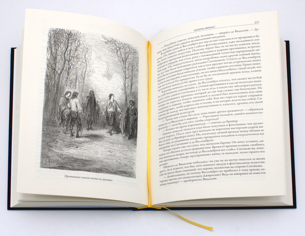 Роман «Капитан Фракасс» - самое популярное историко-приключенческое сочинение французского писателя Теофиля Готье (1811-1872). В начале своей литературной деятельности он успел прославиться как талантливый поэт. Первый сборник его стихов вышел, когда Готье было всего девятнадцать. В то время Теофиль входил в узкий кружок французских поэтов-романтиков, которые говорили про себя, что они «живут поэзией, завтракая одой и обедая балладой». Многие из них грешили высокопарностью и некоторой экзальтированностью своих стихов, в то время как для Готье была характерна простота и поэтичность. К тому же он отличался особой артистичностью в отделке своих строк. Недаром Бодлер, посвятивший Готье свой знаменитый сборник «Цветы зла», назвал в нем Теофиля «волшебником французской словесности». Особое мастерство работы со словом отличало и прозу Готье. Из-под его пера выходили описания собственных многочисленных путешествий, либретто балетов, блестящие критические статьи и сотни фельетонов, которые приходилось писать просто ради заработка. «Капитан Фракасс» стоит в длинном списке произведений Готье несколько особняком. Писатель работал над этим романом с огромным удовольствием, шлифуя, как и в своей поэзии, каждую его строчку. В результате появился шедевр - захватывающий роман о любви, поединках и приключениях странствующих комедиантов. Переиздавался, а позже экранизировался «Капитан Фракасс» многократно. Знаменитый роман в этом издании украшают великолепные рисунки одного из самых талантливых иллюстраторов XIX в. - Гюстава Доре. Он был хорошо знаком с Готье. Писатель, будучи человеком широчайшей эрудиции, стал в 1862 г. председателем Национального общества изобразительных искусств, членом которого был и Доре. Через год Готье закончил писать «Капитана Фракасса». Роман был опубликован в 1863 г., и был отлично принят публикой. Прошло всего два тола, а издатели уже начали планировать новое издание «Капитана Фракасса». Когда рисунки к нему в 1866 г. предложили сделать Доре, тот с радостью согласился. К этому времени он уже проиллюстрировал «Божественную комедию» Данте, «Бурю» Шекспира, «Дон Кихота» Сервантеса и еще дюжину крупных литературных произведений и прекрасно понимал, что «Капитан Фракасс» дает ему широчайшее поле для творчества. К тому же Доре уже сотрудничал с Готье, украсив своими работами его перевод на французский «Приключений барона Мюнхгаузена». Выполненные Доре рисунки к «Капитану Фракассу» до сих пор остаются лучшими иллюстрациями к этому роману.