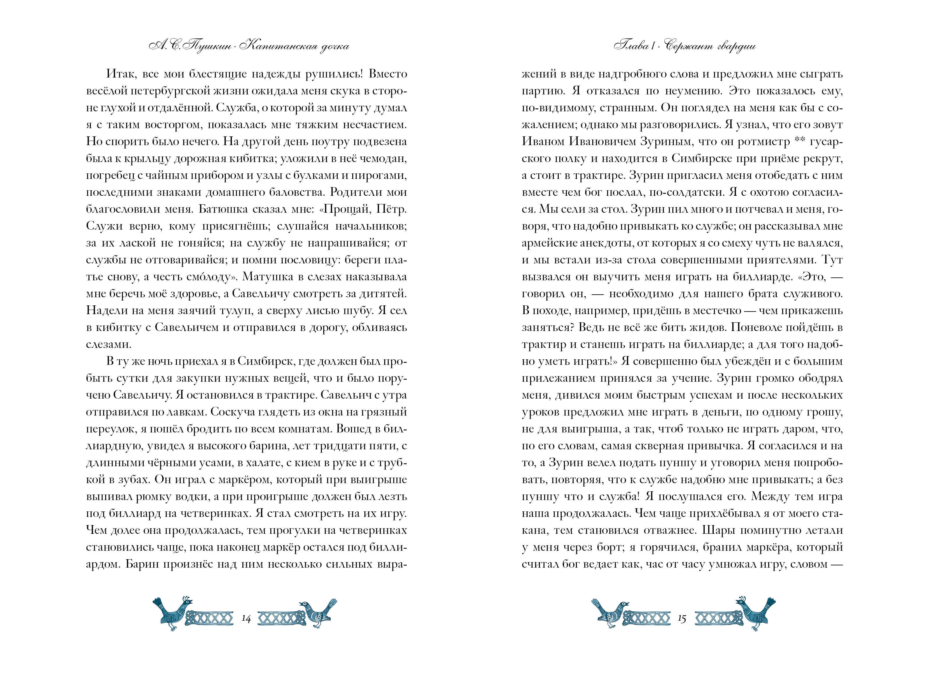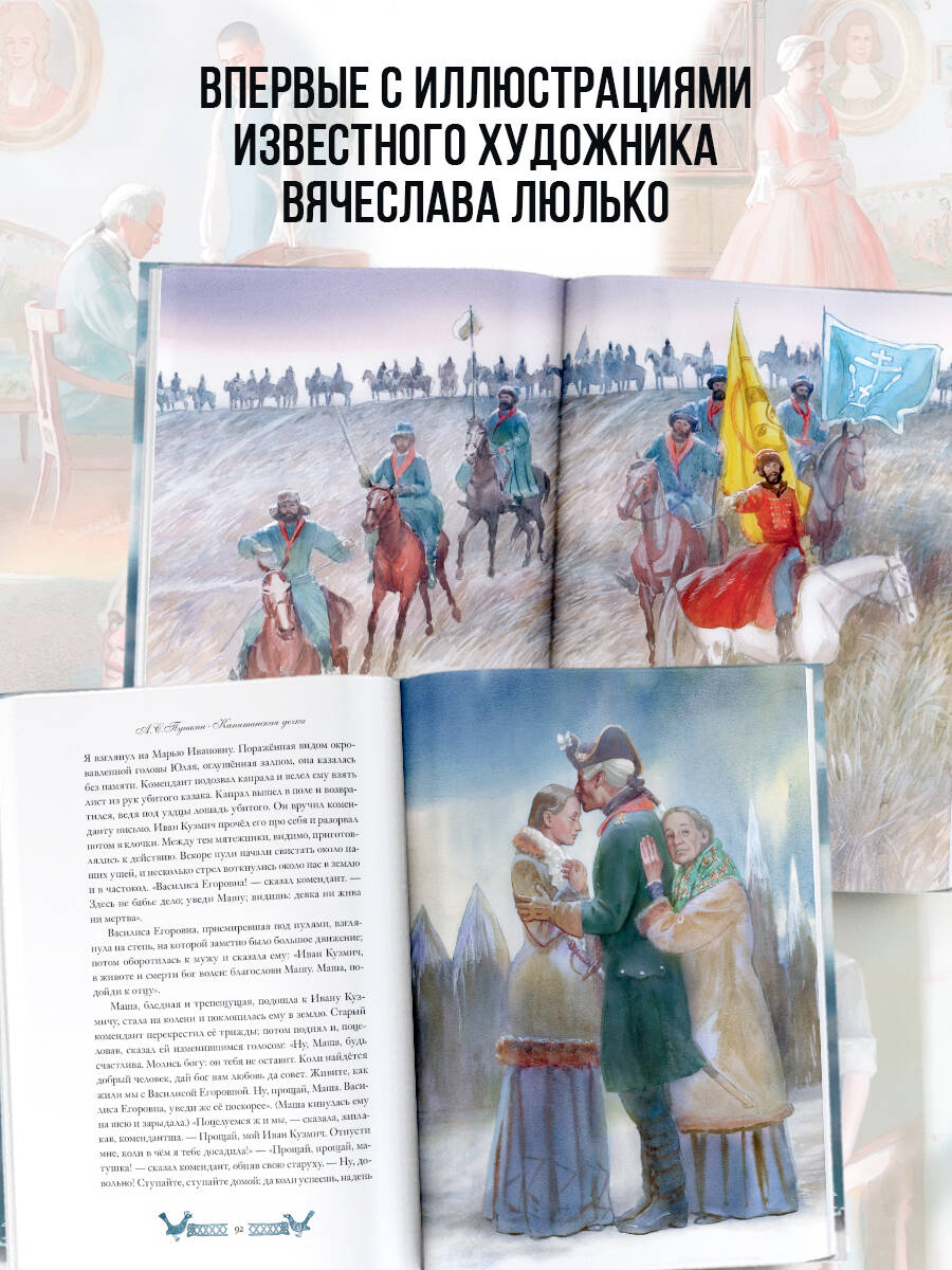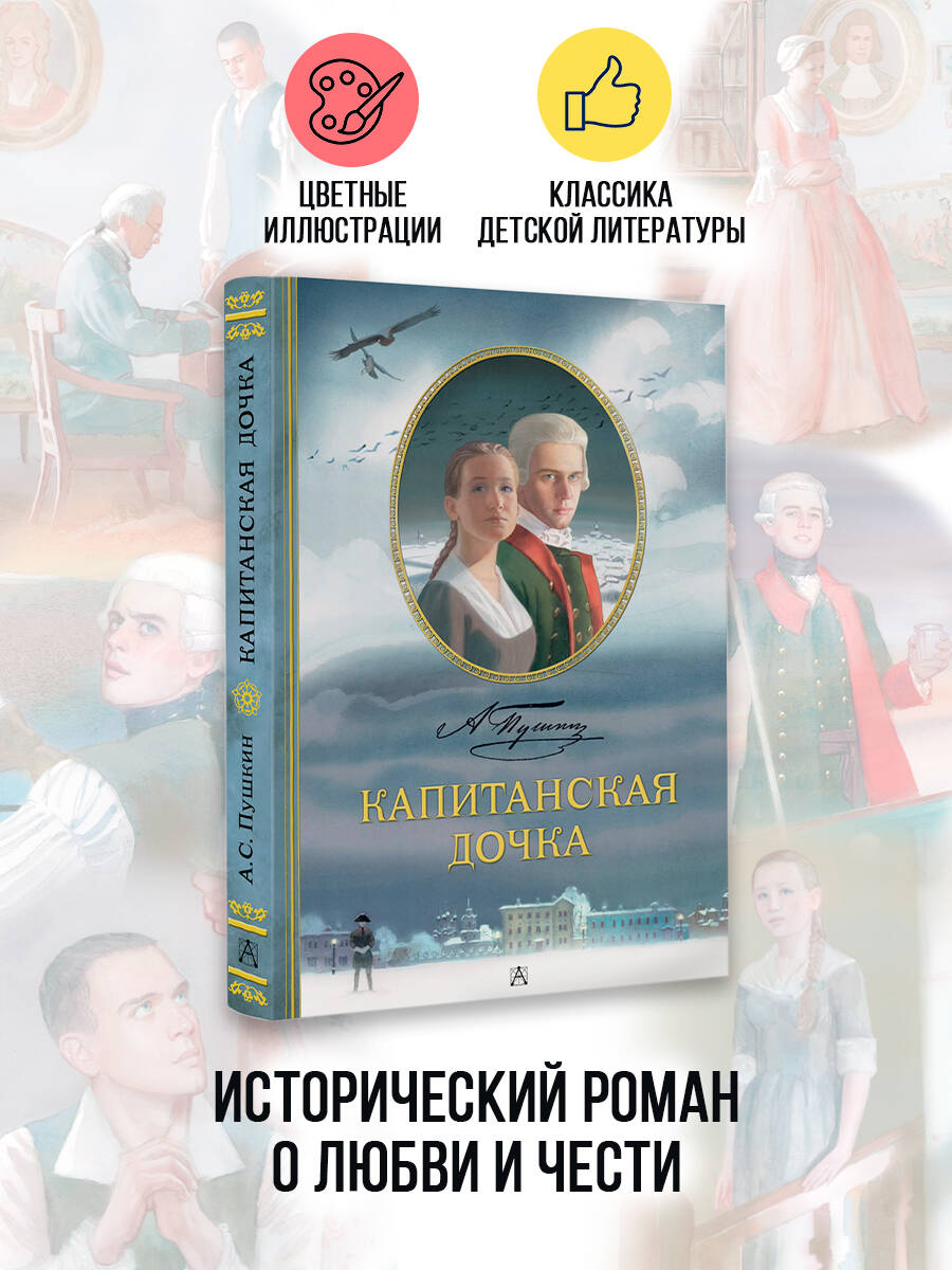 "Капитанская дочка" - это исторический роман Александра Сергеевича Пушкина, действие которого разворачивается в России XVIII века, во времена крестьянского восстания под предводительством Емельяна Пугачёва. Главный герой, Пётр Андреевич Гринёв, молодой офицер, отправляется на службу в Белогорскую крепость, где встречает Машу Миронову, дочь капитана крепости. Их любовь сталкивается с трудностями, когда крепость оказывается захвачена повстанцами... Роман затрагивает важные темы чести, долга и верности, показывая, как личные судьбы переплетаются с историческими событиями. А. С. Пушкин мастерски передаёт атмосферу эпохи, создавая яркие образы как вымышленных, так и реальных исторических персонажей. "Капитанская дочка" - это глубокое размышление о человеческой природе, морали и силе духа. Книга впервые выходит с иллюстрациями известного художника Вячеслава Люлько. Художник сам родом из мест, где происходит действие великого романа. Иллюстрации В. Люлько переносят читателя в мир екатерининского времени. Для среднего школьного возраста.| Издательство | Издательство "АСТ" |