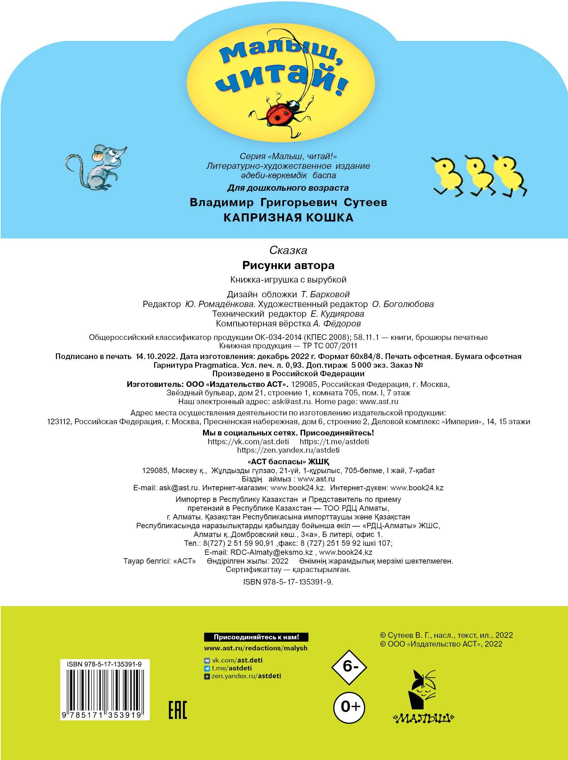 Интересная история художника-сказочника Владимира Григорьевича Сутеева о девочке и очень капризной кошке.| Издательство | ИЗДАТЕЛЬСТВО "АСТ" |