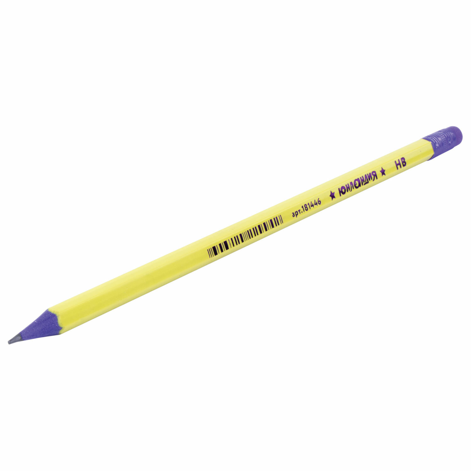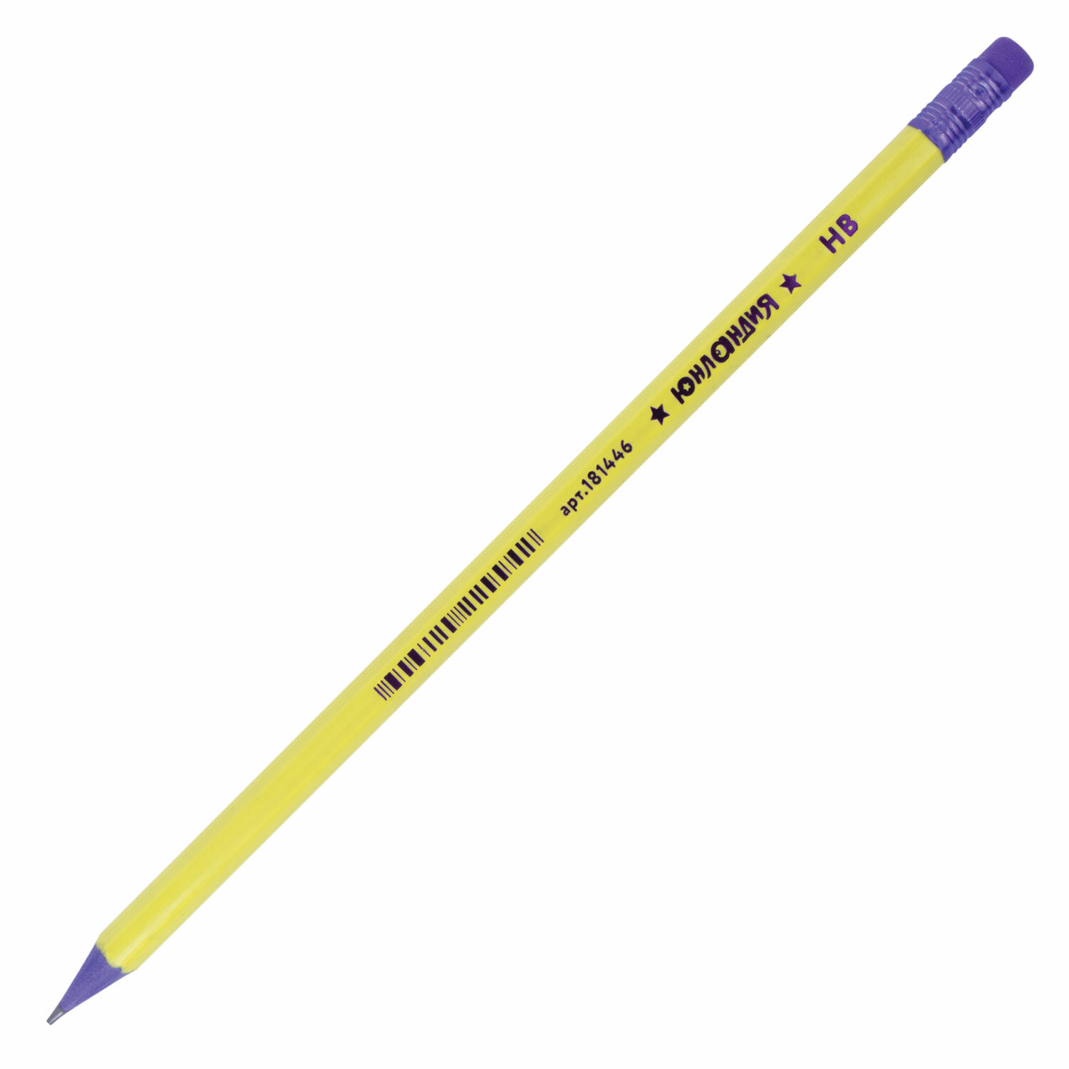 Карандаш чернографитный "Юнландия", 1 штука, НВ, пластиковый, корпус ассорти, с резинкой
