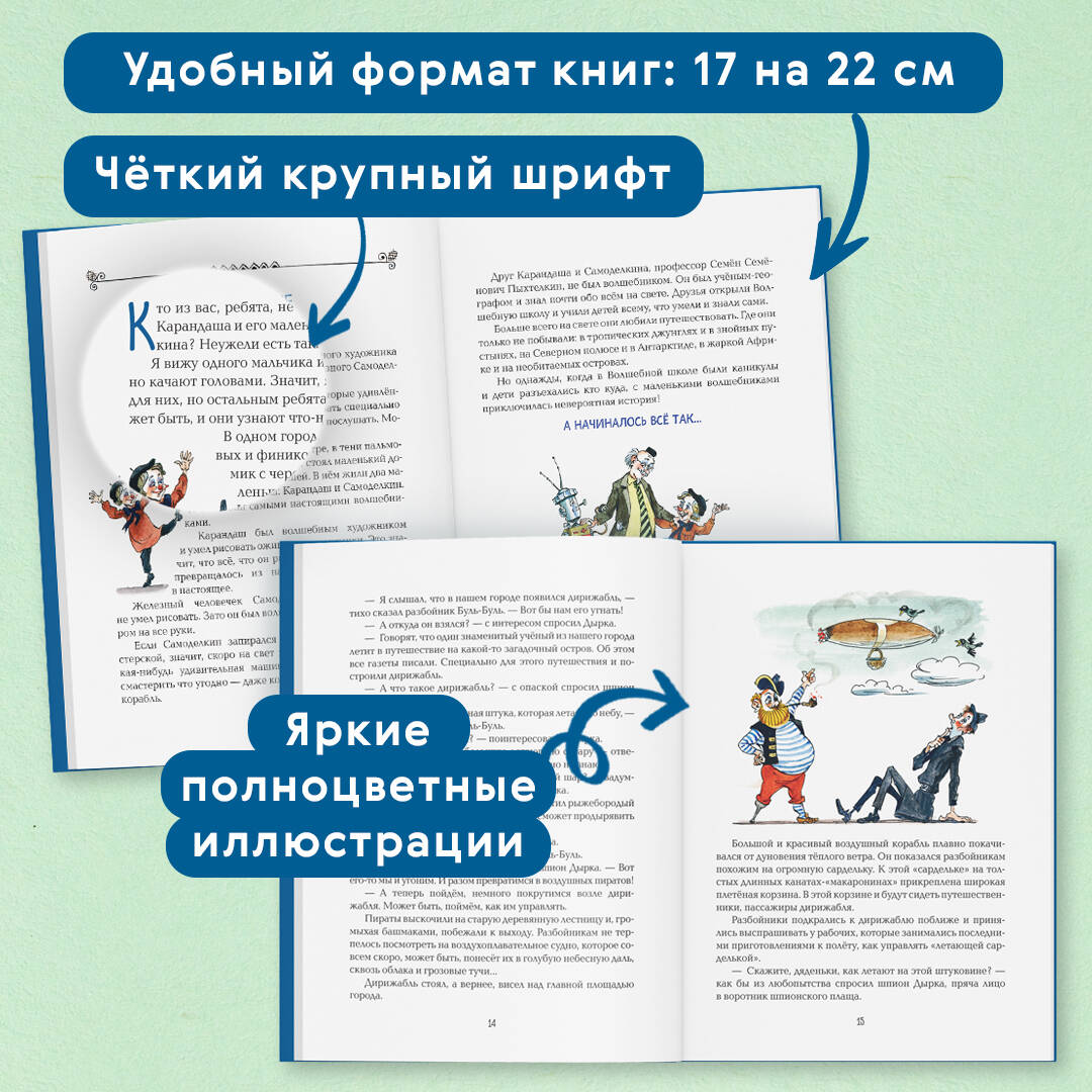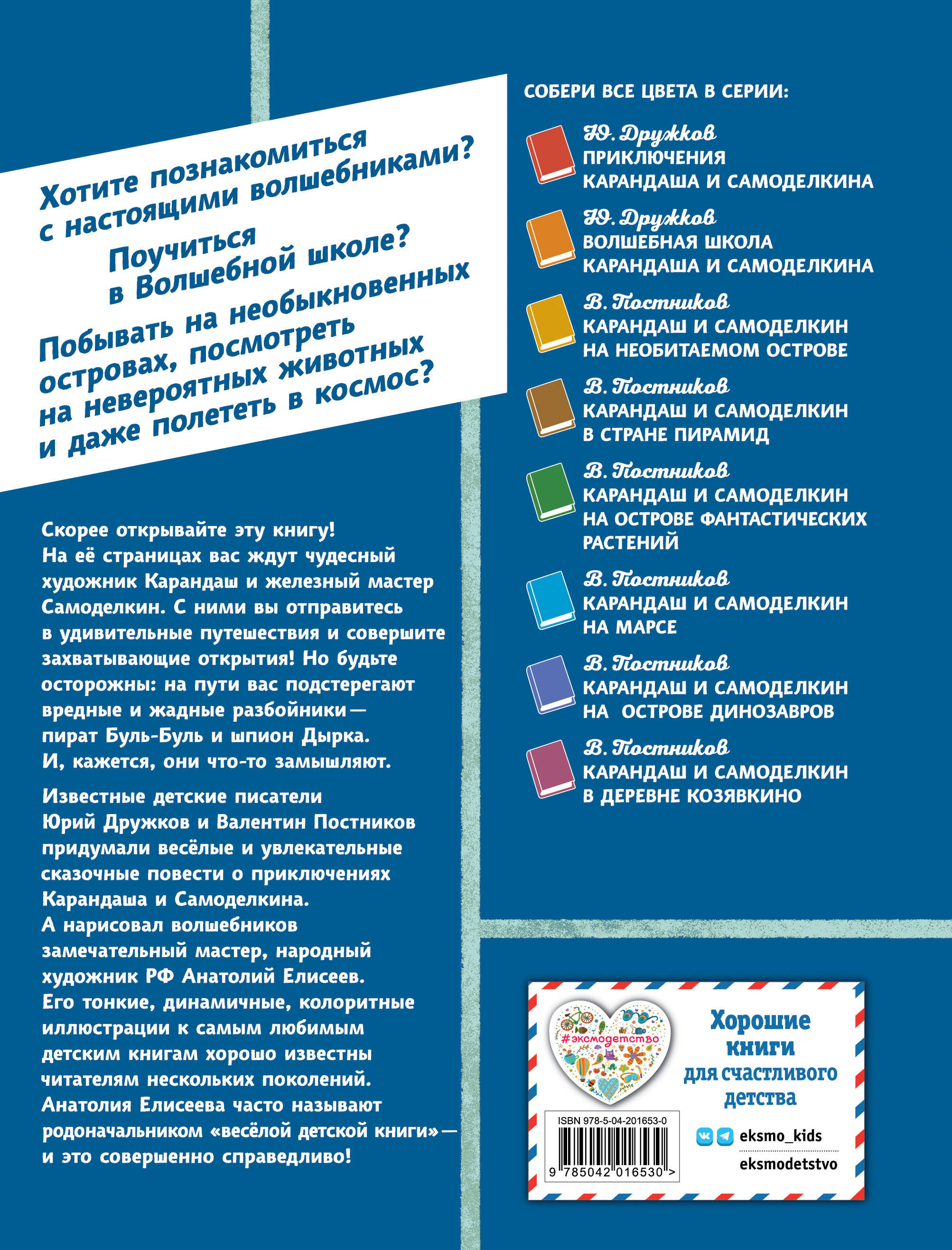 УВЛЕКАТЕЛЬНЫЕ, ПОЗНАВАТЕЛЬНЫЕ, ЯРКИЕ СОВРЕМЕННЫЕ СКАЗКИ С ИЛЛЮСТРАЦИЯМИ ВЫДАЮЩЕГОСЯ МАСТЕРА АНАТОЛИЯ ЕЛИСЕЕВА! Издание удобного формата. Твёрдый переплёт с частичным лаком. Белая бумага. Чёткий, удобный для чтения шрифт. Яркие полноцветные иллюстрации. Мегапопулярные герои отечественной детской классики - волшебный художник Карандаш и железный мастер на все руки Самоделкин - рады новым встречам с читателями всех возрастов! Где-то в океане есть загадочный остров, о котором рассказывают невероятные истории. Говорят, что пчёлы там размером с вертолёт, а машущая крыльями бабочка вызывает ураган. Любознательные волшебники обязательно проверят, правда ли это. А наградой им станут необычные «драгоценности». Больше полувека назад писатель Юрий Дружков рассказал об удивительных событиях, происходивших с весёлыми человечками, в своих книгах «Приключения Карандаша и Самоделкина» и «Волшебная школа Карандаша и Самоделкина». Затем эстафету весёлых приключений принял сын Юрия Дружкова, известный детский писатель Валентин Постников. Благодаря его неистощимой фантазии любимые герои побывают в самых необыкновенных уголках Земли и в космосе, встретятся с динозаврами и даже… поймают привидение! А читатели убедятся, что Валентина Постникова совершенно справедливо называют «самым весёлым современным сказочником». Главной «изюминкой» этих книг стали яркие, остроумные, изящные иллюстрации известнейшего советского и российского художника Анатолия Михайловича Елисеева.| Издательство | ООО "Издательство "Эксмо" |