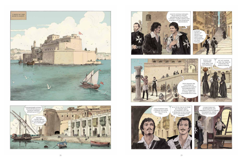 Микеланджело Меризи, известный как Караваджо (1571-1610), вошел в историю как один из величайших художников - тонко чувствующий, стремительный, склонный к риску и гедонизму. Кончик его кисти вырезал свет и тени, создавая незабываемые работы и необыкновенный реализм. Четыре столетия спустя другой итальянский мастер рисования, Мило Манара, отдает дань уважения гению своим графическим романом. Вторая книга, «Помилование», показывает Караваджо как фигуру одновременно героическую и трагическую, в то же время не лишенную всего человеческого. Правдоподобность жизни художника не вызывает сомнений, как если бы Манара рассказывал о том, что видел собственными глазами, с безграничным уважением к коллеге, столь далекому по времени, но близкому по чувствительности и творческим намерениям.| Издательство | Metamorphoses |