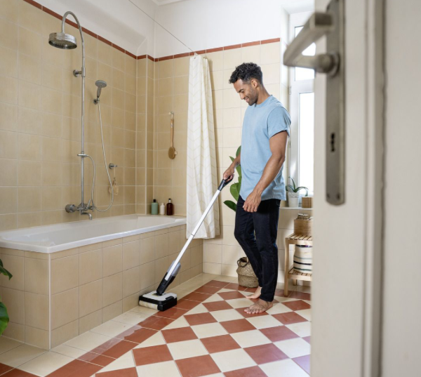 Беспроводной напольный очиститель, который одновременно вытирает и собирает влажную и сухую грязь за один проход. Работает около 20 минут от одного заряда аккумулятора и может обслуживать около 70 м² за заряд. Оснащён двумя литий‑ионными аккумуляторами 4 В, системой двойных баков (чистой воды / грязной воды), автоматическим вращением, гибкой головкой и возможностью чистки по краям.