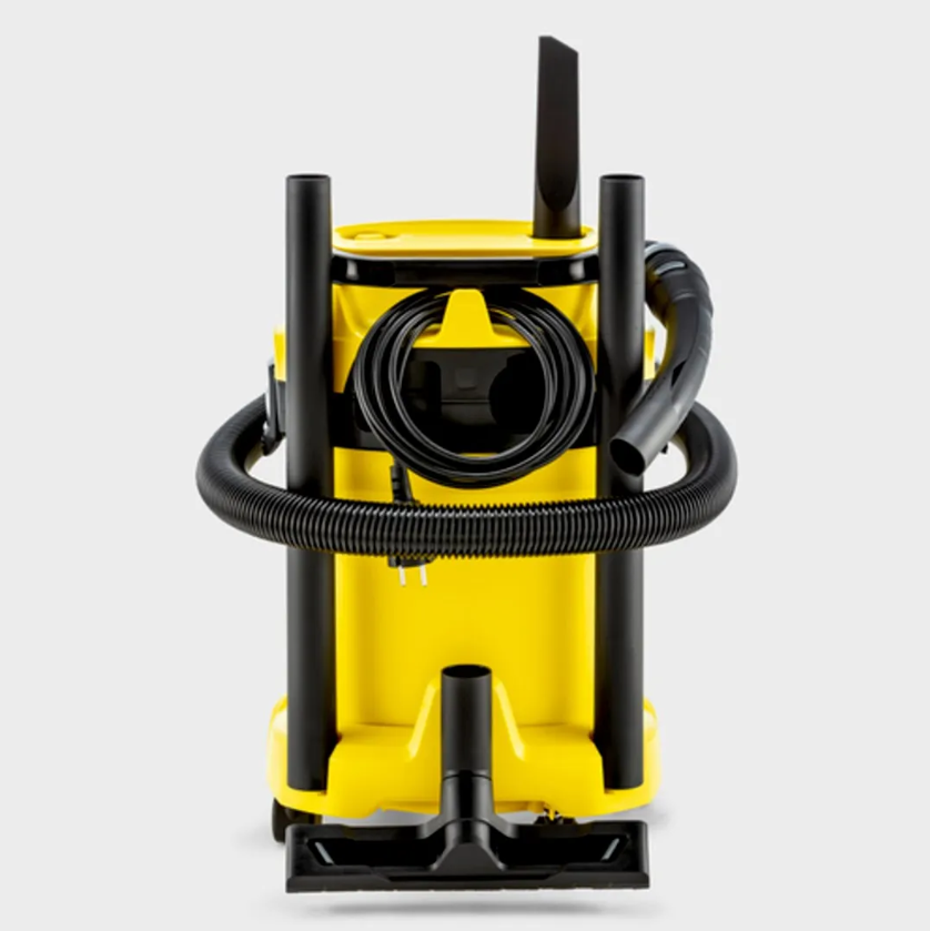 Это универсальный пылесос для влажной и сухой уборки с 17-литровым пластиковым контейнером, подходящий для различных задач.