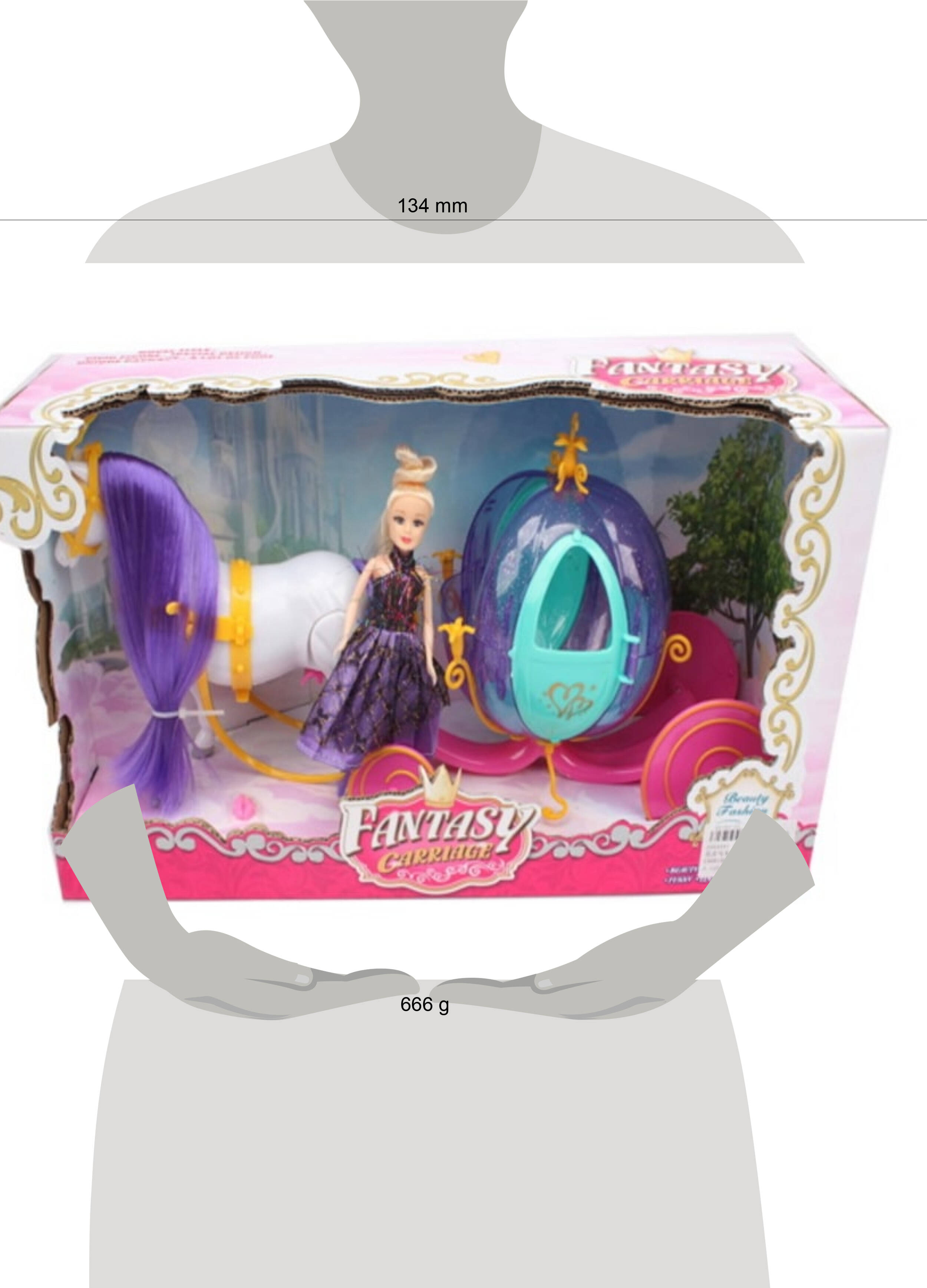 Аннотация: Карета с куклой.Сказочная карета(кукла,лошадь ход,звук,2*ААне в ком,в кор.)(40х13х21см)(арт.2044441)