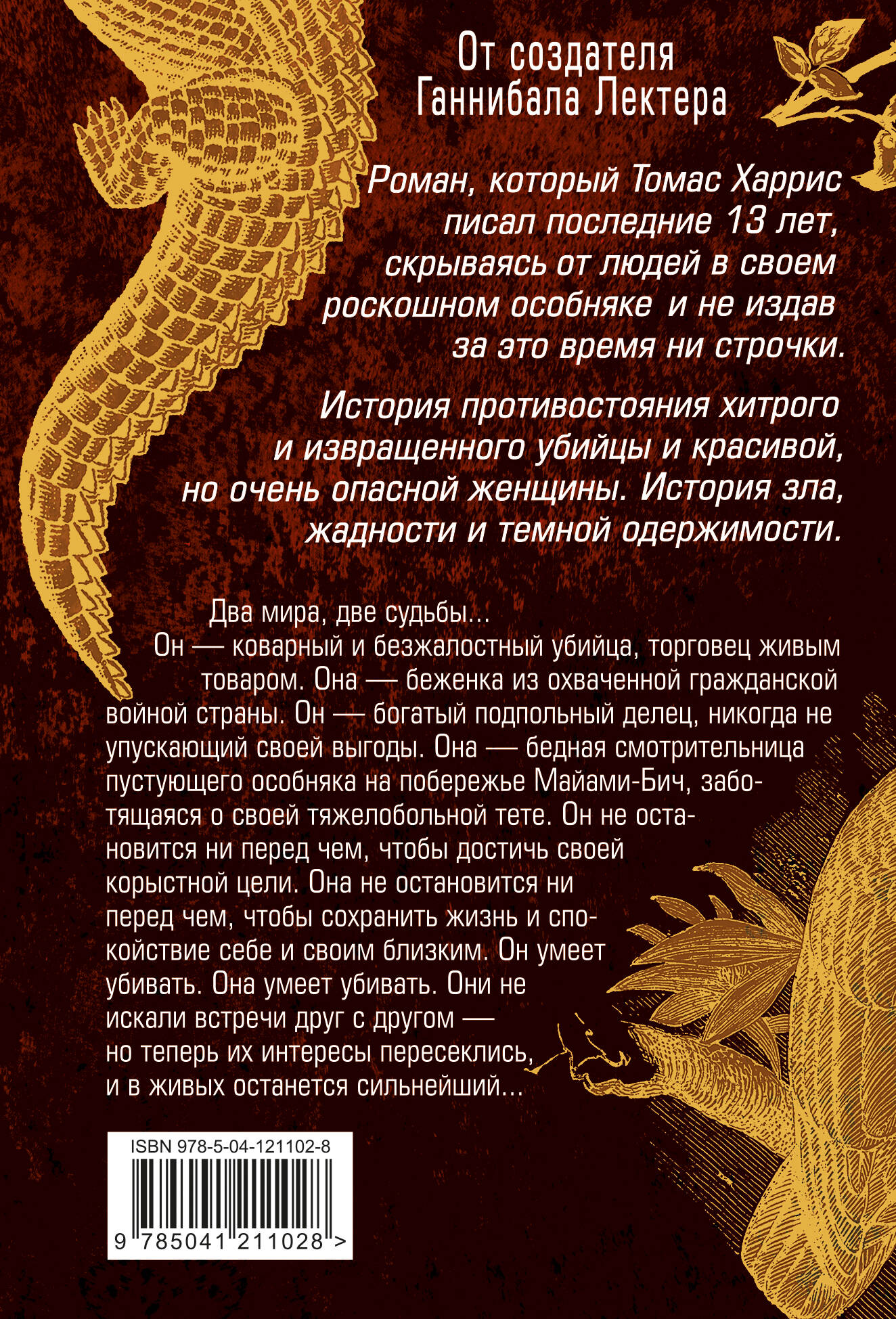 Роман, который Томас Харрис писал последние 13 лет, скрываясь от людей в своем роскошном особняке и не издав за это время ни строчки. История противостояния хитрого и извращенного убийцы - и красивой, но очень опасной женщины. История зла, жадности и темной одержимости. Два мира, две судьбы… Он - коварный и безжалостный убийца, торговец живым товаром. Она - беженка из охваченной гражданской войной страны. Он - богатый подпольный делец, никогда не упускающий своей выгоды. Она - бедная смотрительница пустующего особняка на побережье Майами-Бич, заботящаяся о своей тяжело больной тете. Он не остановится ни перед чем, чтобы достичь своей корыстной цели. Она не остановится ни перед чем, чтобы сохранить жизнь и спокойствие себе и своим близким. Он умеет убивать. Она умеет убивать. Они не искали встречи друг с другом - но теперь их интересы пересеклись, и в живых останется сильнейший…| Издательство | ООО "Издательство "Эксмо" |
