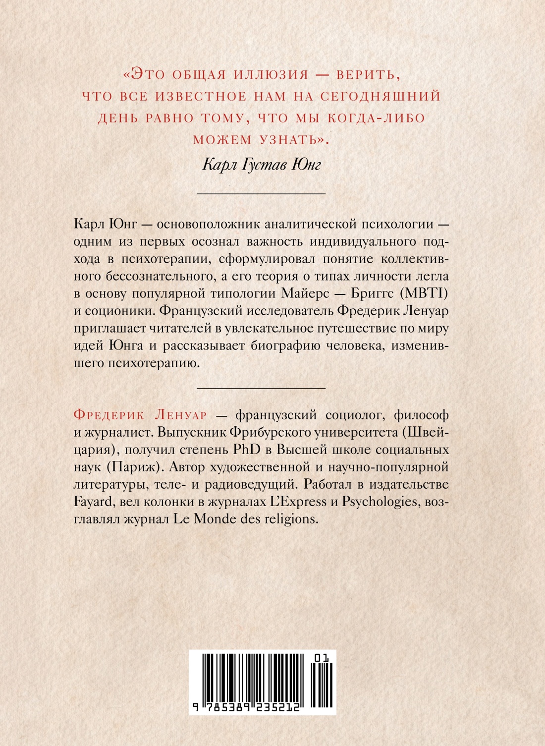 Психиатр, увлеченный восточной философией и оккультизмом, соратник Фрейда, порвавший со своим учителем, - Карл Густав Юнг переосмыслил психиатрию и выбрал лечить человека, а не симптомы. За свою долгую, насыщенную жизнь Карл Юнг разработал направление аналитической философии, которое широко используется современными психотерапевтами, сформулировал понятия коллективного бессознательного, архетипов, индивидуации. На страницах этой книги французский философ и журналист Фредерик Ленуар создает яркий, живой портрет Юнга со всеми его противоречиями: компромиссы с нацистами, антисемитские высказывания, супружеская неверность. Юнг не был идеален, но именно поэтому он смог столь глубоко проникнуть в тайны психики человека. «Просветитель и визионер, Юнг не перестает напоминать о том, что именно в человеческой психике заключается как путь к лучшему будущему, так и худшие опасности для человечества и планеты» (Фредерик Ленуар).| Издательство | КоЛибри |