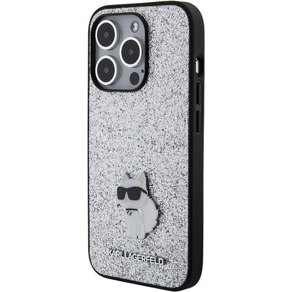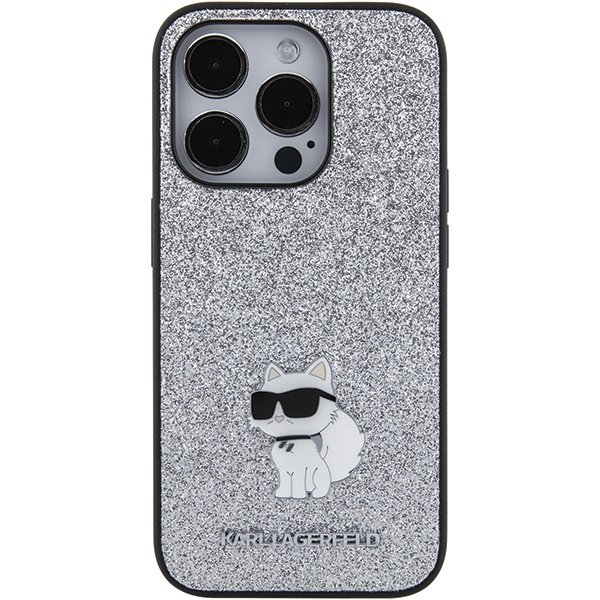 Karl Lagerfeld Fixed Glitter Choupette Logo Metal Pin Защитный Чехол для Apple iPhone 15 Pro Max