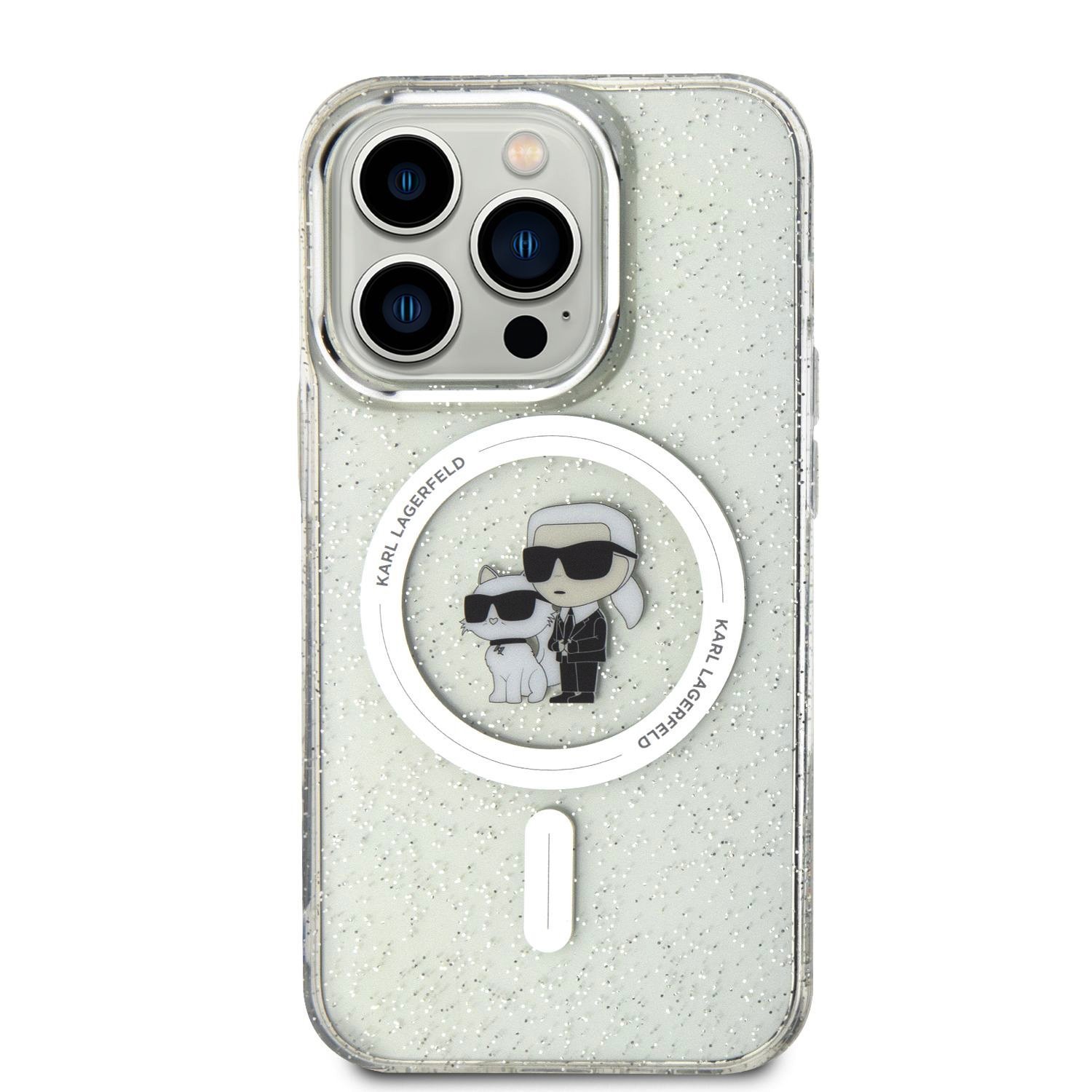 Karl Lagerfeld IML Glitter Karl and Choupette MagSafe Case Защитный чехол для iPhone 15 Pro / прозрачный