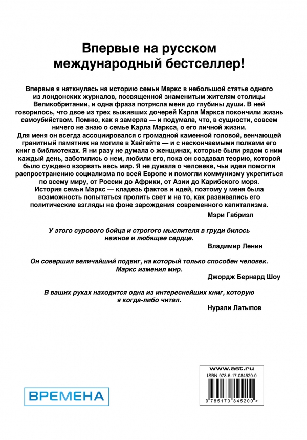 История семьи Маркс - кладезь фактов и идей, поэтому у меня была возможность попытаться пролить свет и на то, как развивались его политические взгляды на фоне зарождения современного капитализма. Мэри Габриэл.