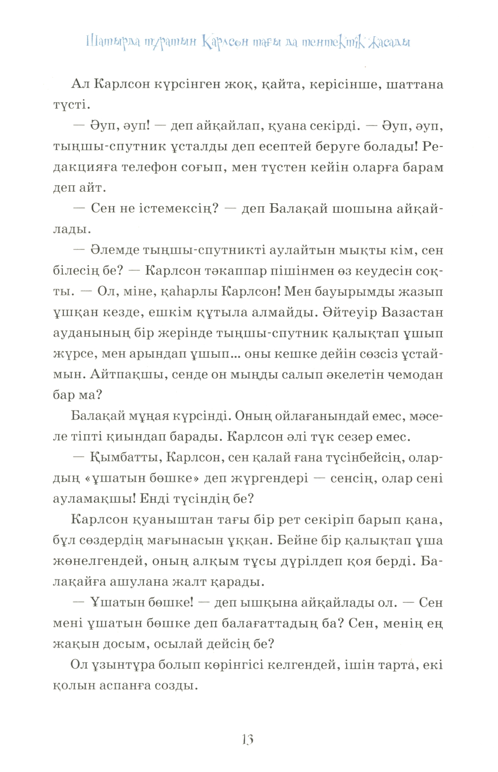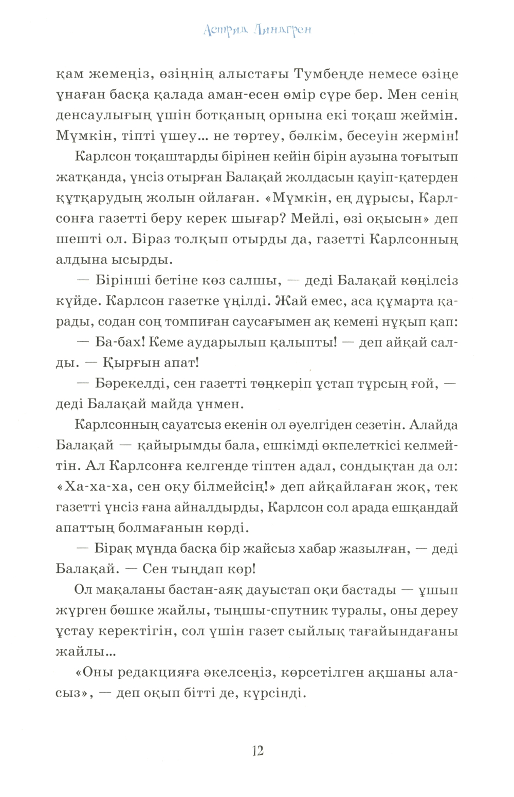 Аннотация: Карлсон, который живет на крыше, проказничает опять (на казахском языке)