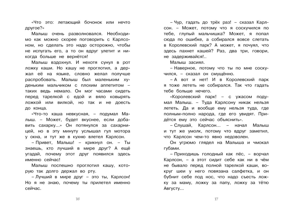 Нет тебе покоя, если ты дружишь с Карлсоном! Потому что он горазд на выдумки и может превратить твой день в тарарам, а потом вдруг вспомнить, что у него дела, и улететь. И тогда тебе ничего не остаётся, как ждать. Ждать, когда он снова прилетит, чтобы вместе попроказничать. Третья книга трилогии про Малыша и Карлсона замечательной шведской писательницы АСТРИД ЛИНДГРЕН. В книге есть вступительная статья о её творчестве. Все произведения в серии «Чтение - лучшее учение» публикуются в полном объеме без сокращений и адаптации.