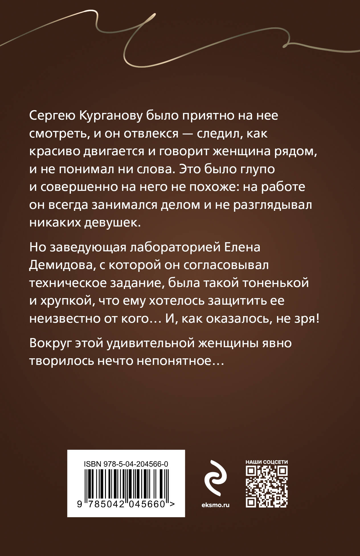 Сергею Курганову было приятно на нее смотреть, и он отвлекся - следил, как красиво двигается и говорит женщина рядом, и не понимал ни слова. Это было глупо и совершенно на него не похоже: на работе он всегда занимался делом и не разглядывал никаких девушек. Но заведующая лабораторией Елена Демидова, с которой он согласовывал техническое задание, была такой тоненькой и хрупкой, что ему хотелось защитить ее неизвестно от кого… И, как оказалось, не зря! Вокруг этой удивительной женщины явно творилось нечто непонятное… Татьяна Устинова рекомендует: «Удивительно, но в книгах Евгении Горской угадывается настроение больших русских романов. Она умещает в детектив современную энциклопедию разнообразнейших губительных страстей, созидательных любовей и ярких, живых, разноголосых героев. Получается не только интересно и зажигательно, но еще и очень по-настоящему - ровно настолько, чтобы захотелось поверить в эту историю. Горская ловко и умеючи держит читателя в напряжении: тебе иногда страшно, иногда смешно, иногда будто бы совсем безнадежно, но в конечном итоге понимаешь: все будет хорошо!»| Издательство | ООО "Издательство "Эксмо" |