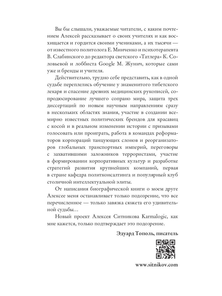 Книга Karmalogic ориентирована на широкий круг читателей, а оригинальная методика и уникальные результаты будут интересны специалистам в области психологии, социологии, педагогики, политологии и маркетинга.