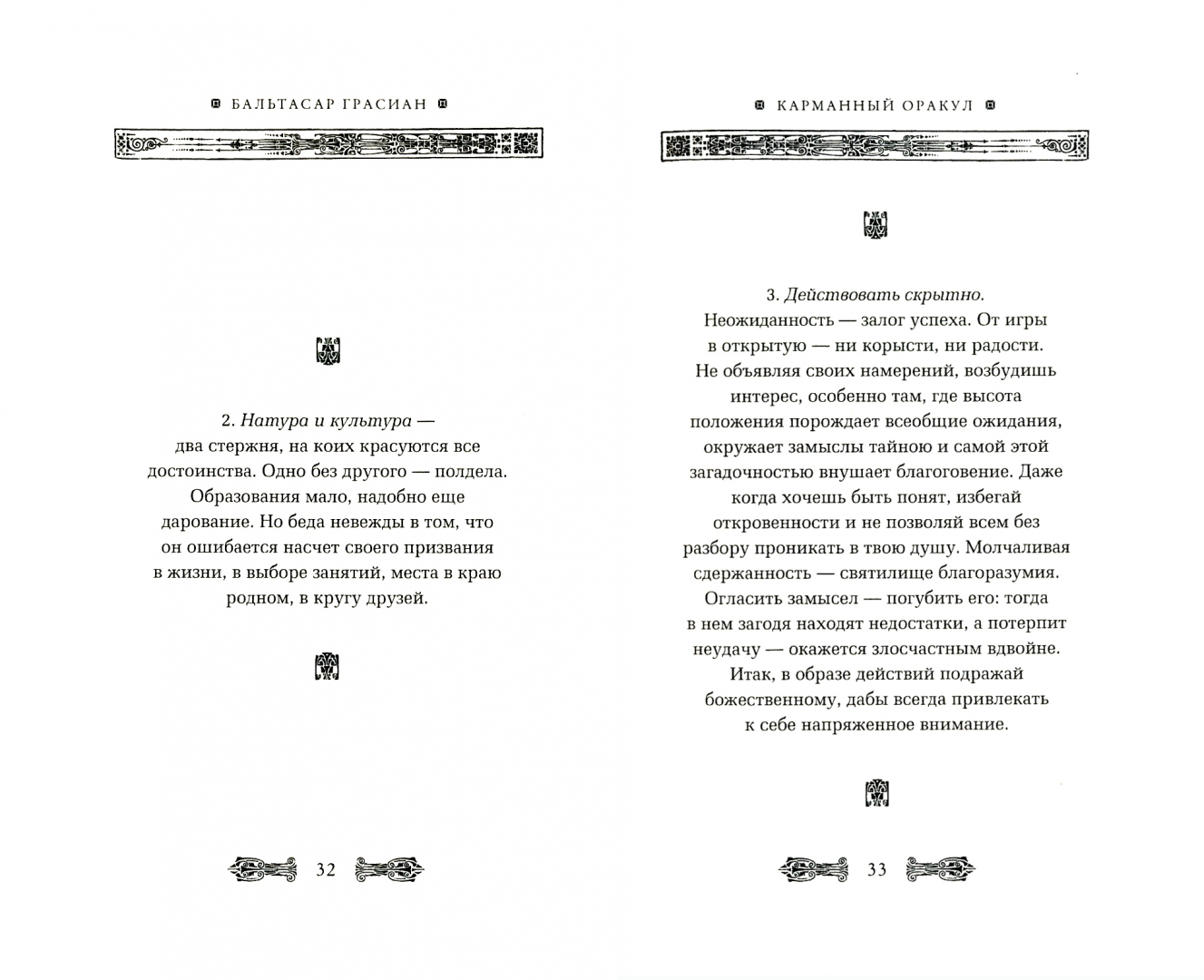 Бальтасар Грасиан - крупнейший испанский философ-моралист и писатель XVII в., обновивший сам дух испанской литературы и создавший руководства на все случаи жизни. Сочинения Грасиана долго были в забвении, пока Шопенгауэр и Ницше вновь не открыли философа читающей публике. «Карманный оракул» - наука внимания к себе, наука, превращающая жизнь в роман. Чтение «Карманного оракула» не только помогает разобраться в парадоксах и странностях психической жизни, в том числе современного человека, но и разгадать загадки культуры испанского барокко.