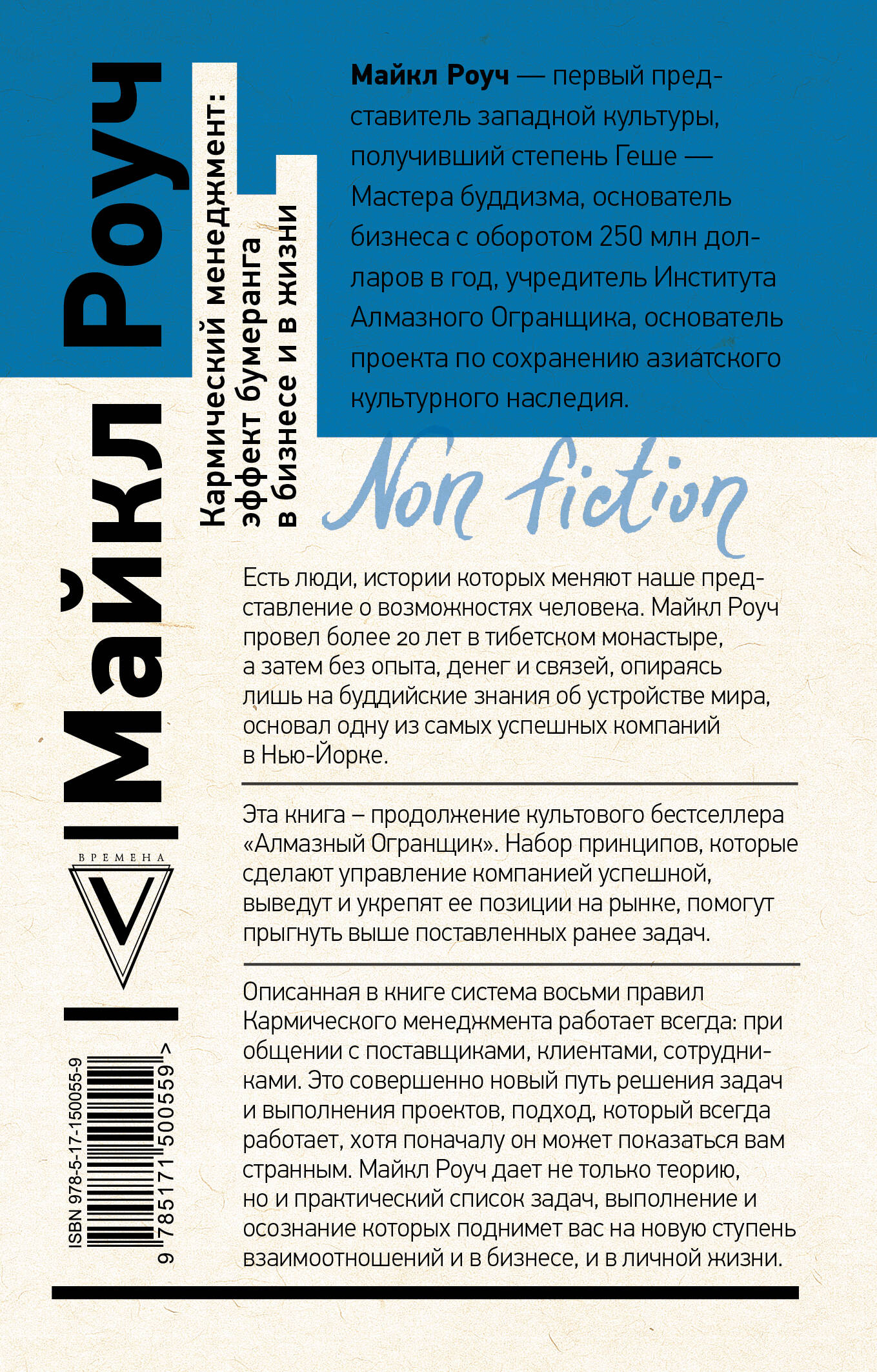 «Кармический менеджмент» - долгожданное продолжение «Алмазного Огранщика», одной из самых популярных в мире книг о бизнесе. Эта книга дает нам совершенно новый путь решения задач и выполнения проектов. И хотя для вас изложенный здесь подход может сперва показаться странным, тем не менее он работает. Попробуйте сами. От вас всего-то и требуется - потратить час своего времени. Потому что Майкл Роуч глубоко убежден: верную идею легко можно изложить в нескольких словах, а дальше все зависит исключительно от вас!| Издательство | АСТ |