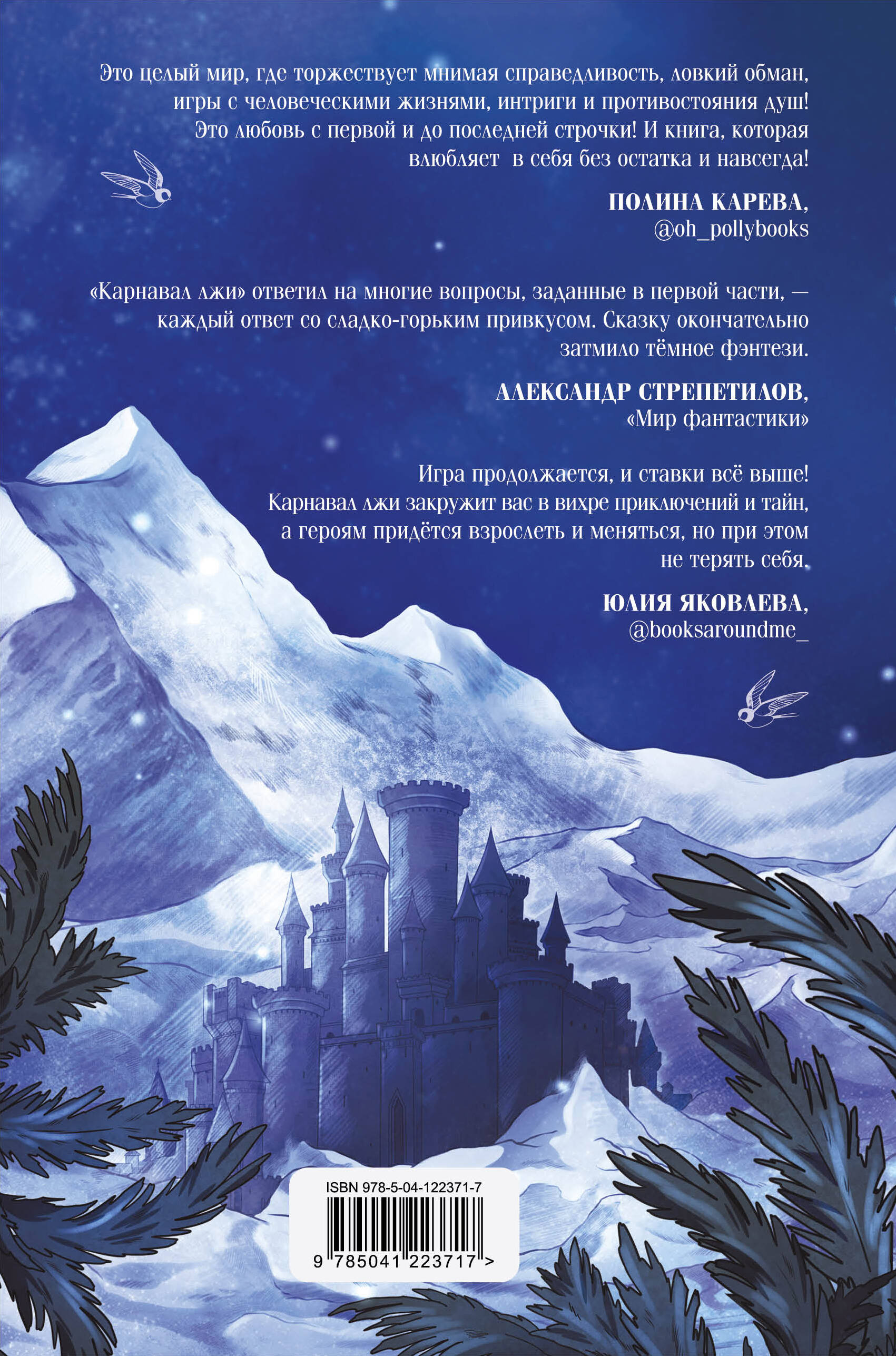 Полгода. Всего полгода спокойной жизни - столько Таше уготовила судьба. Тёмные игры Лиара продолжаются, и пришло время сделать следующий ход. Первый этап игры, перевернувшей Ташину жизнь, завершён. Настала пора для нового. Он приносит девушке княжеский титул, приглашение ко двору… и покушение на короля. Покушение, в котором несправедливо обвиняют её друзей. Таше придётся снова отправиться в путешествие, чтобы спасти близких, - только её собственная беда куда ближе, чем кажется. И теперь на кону не только свобода и счастье девушки, но и судьба всего королевства. «Карнавал лжи» - продолжение романа «Кукольная королева». Вторая книга тетралогии «Темные игры Лиара», полная приключений, тайн и «стекла». Продолжение цикла по достоинству оценили книжные блогеры и рецензенты журнала «Мир фантастики». Издание дополнено картой на форзацах. Герои должны отыскать ответы на свои вопросы, но как не потерять себя? Пришло время сбросить маски!| Издательство | ООО "Издательство "Эксмо" |