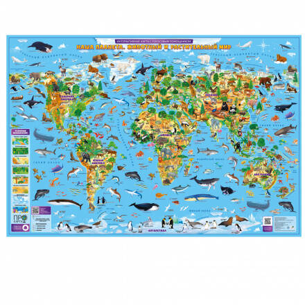Аннотация: Карта 101х69 см. Наша планета. Животный и растительный мир. ЛАМ. Настенная. ПРОкарта