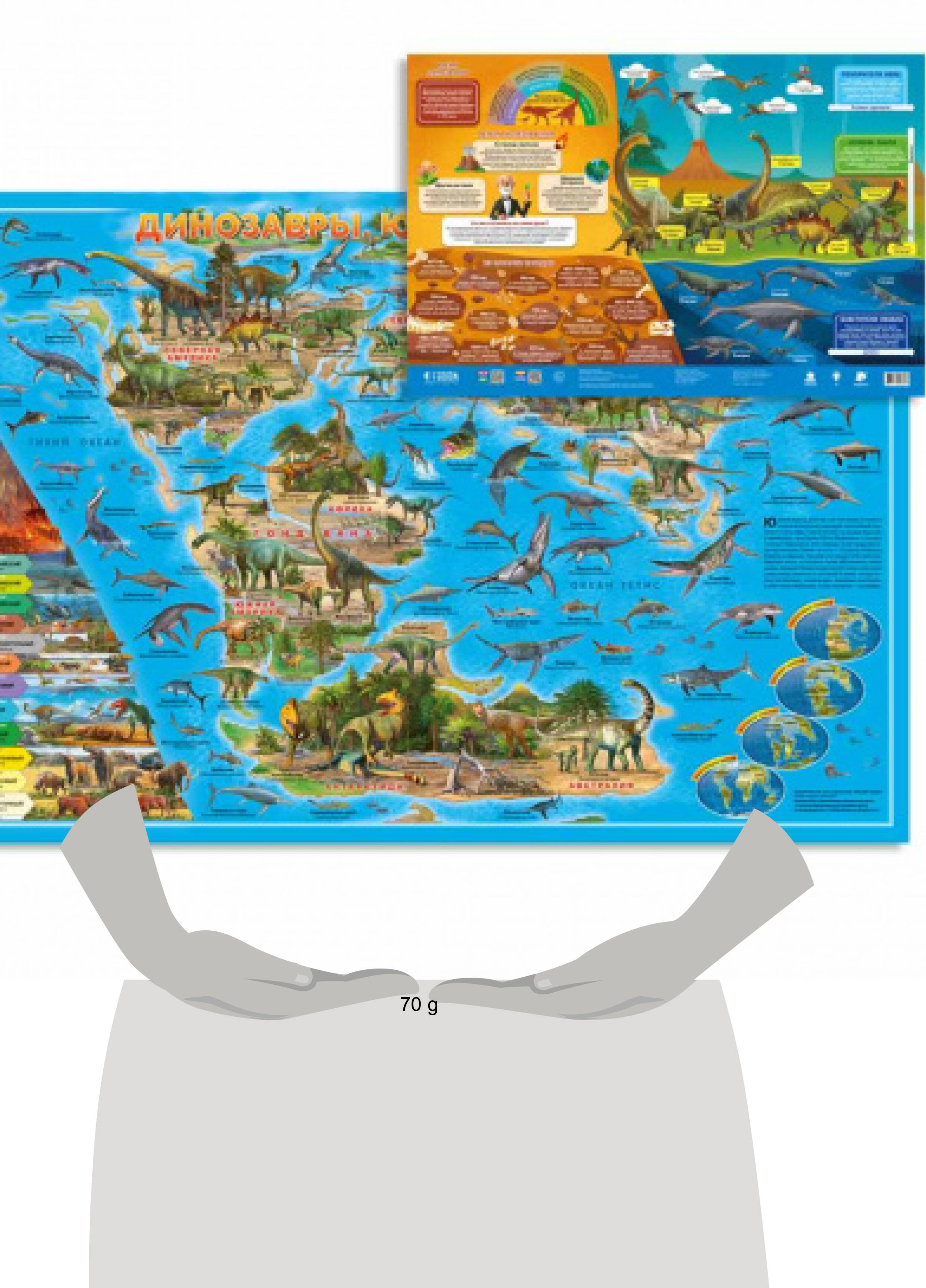 ДВУХСТОРОННЯЯЯ настольная карта "Динозавры. Юрский период" наглядно иллюстрирует положение материков и представляет обитателей Земли во времена Юрского периода. Огромные и устрашающие динозавры, птерозавры, ихтиозавры, плиозавры - царили на Земле. Кроме того, на карте представлена схема континентального дрейфа и временная шкала истории Земли. На оборотной стороне карты присутствует инфографика о том в когда и где на земле обитали динозавры, что привело к их исчезновению и ещё много полезной и интересной информации.| Издательство | ГеоДом ООО |