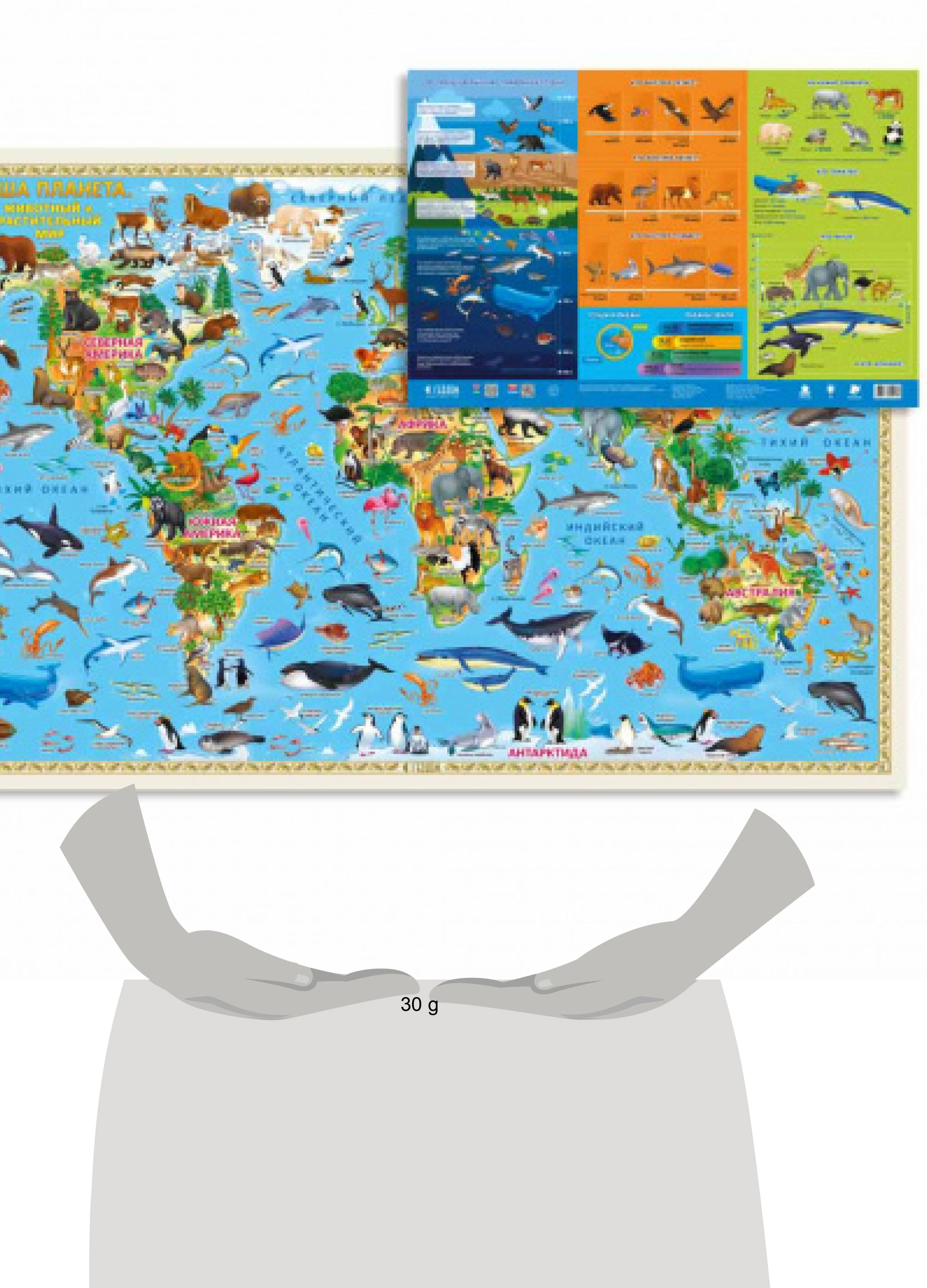 Аннотация: Карта 58х38 см. Наша планета. Животный и растительный мир. Настенная двухсторонняя. ГЕОДОМ