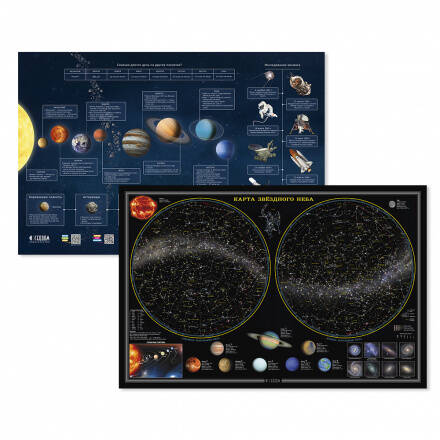 Аннотация: Карта 58х38 см. Звездное небо/Планеты. Настенная двухсторонняя. ГЕОДОМ