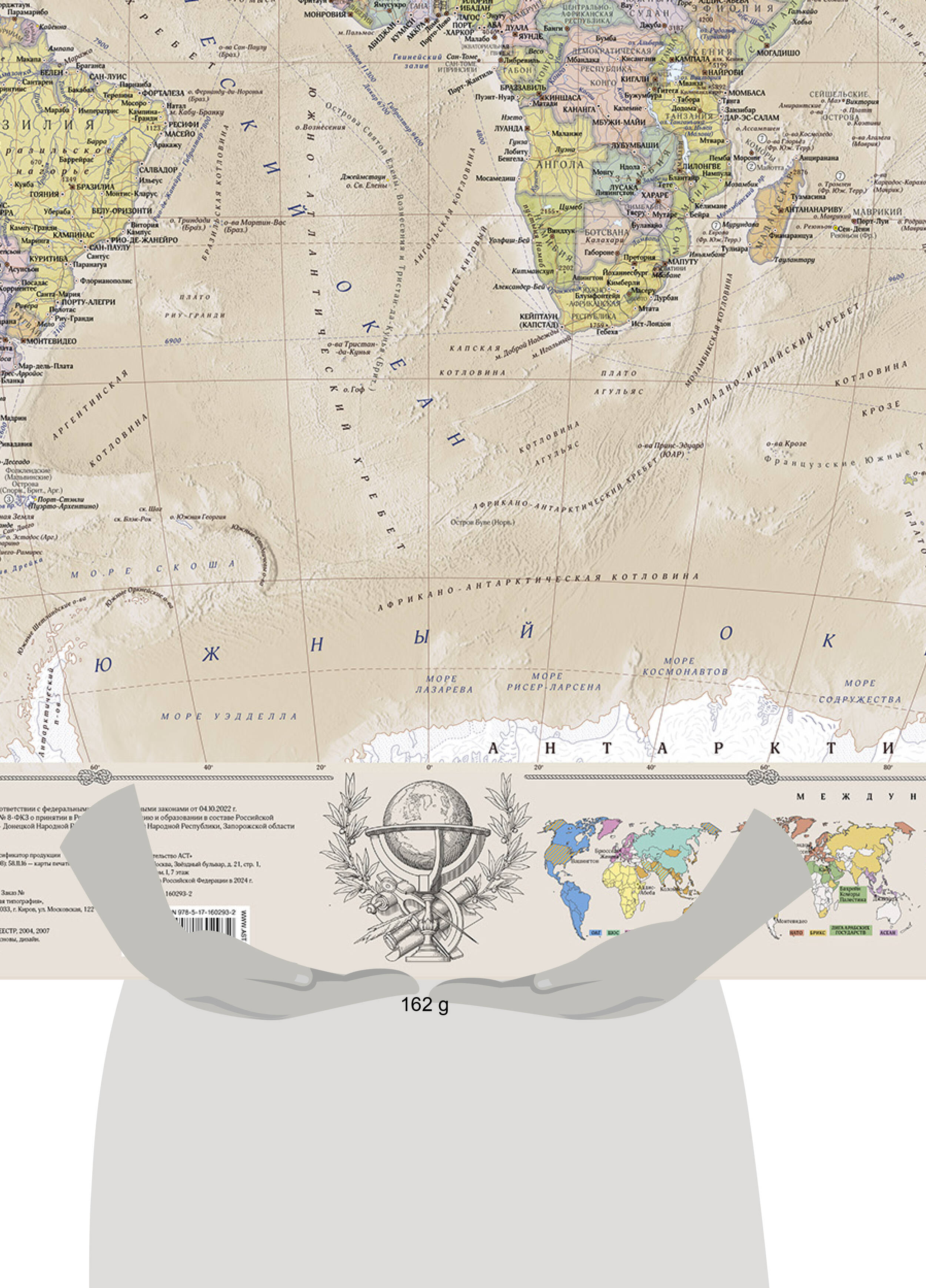 Односторонняя настенная карта размером 1170х790 мм, масштаб 1:32 000 000 (в 1 см 320 км). На Политической карте представлены все независимые государства мира, включая Россию в новых границах, а также владения и территории с особым статусом. Хорошо различимыми пунсонами показаны населённые пункты с градациями "более 1 млн жителей", "от 100 тыс. до 1 млн жителей" и "менее 100 тыс. жителей". Основную карту дополняет врезка в более крупном масштабе на Европу. Карта стилизована под старинное издание, оформление в ретро-стиле не мешает восприятию картографической информации, цвета, в которые раскрашены страны и океаны, сохраняют читаемость карты. Карта мира под старину украсит стену и станет полезным информационным акцентом в вашем интерьере.| Издательство | Издательство "АСТ" |