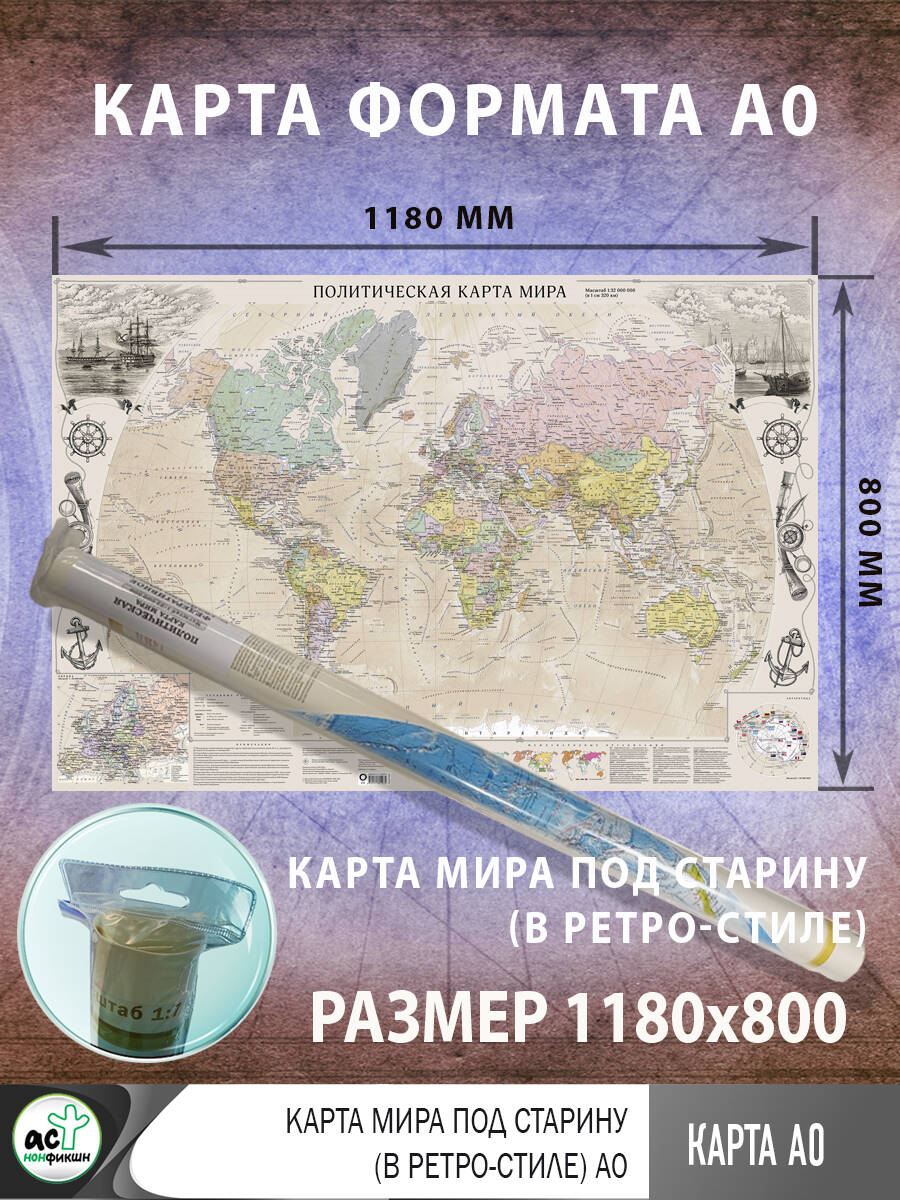 Аннотация: Карта мира под старину (в ретро-стиле) А0 (в тубусе)