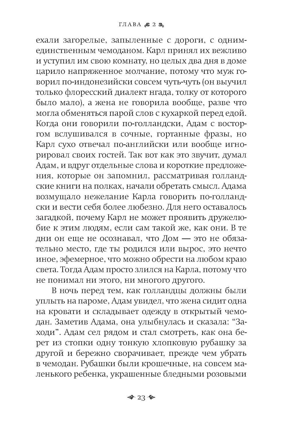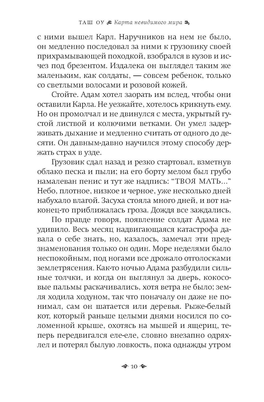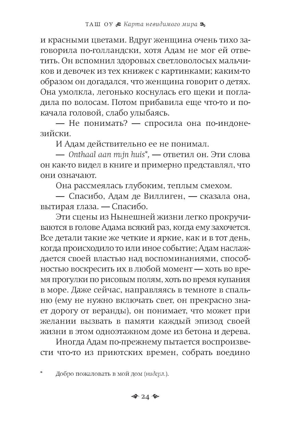 История о судьбах, которые переплетены с призрачными картами прошлого, - о том, как человек ищет себя через забвение и разлуку. Шестнадцатилетний Адам - трижды сирота: мать бросила мальчика и его старшего брата Джохана, потом его покинул Джохан, которого усыновили, и Адам остался совсем один, пока его не забрал к себе голландец Карл, который стал мальчику приемным отцом и увез его на идиллический отдаленный индонезийский остров. Когда Карла арестовывают на фоне политических волнений в Индонезии 1960-х годов, Адам вновь остается один и отправляется в Джакарту, чтобы найти приемного отца. Параллельно развивается история Джохана. Он живет в богатой приемной семье Малайзии и пытается справиться с чувством чуждости, которое никогда не покидает его, разобраться с давним детским своим предательством, когда он оставил младшего брата. Поиски Адама приводят его к Маргарет - американской преподавательнице, которая станет его проводником в хаотичном аду Джакарты. «Карта невидимого мира» - книга о памяти, идентичности, братской любви, предательстве и искуплении. Это роман о том, что некоторые миры невидимы, но именно они формируют наши жизни, отношения и решения.| Издательство | Фантом Пресс |