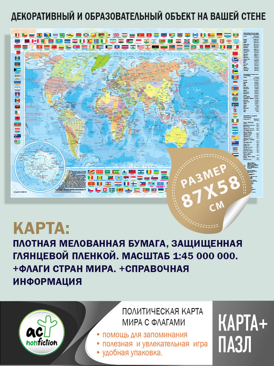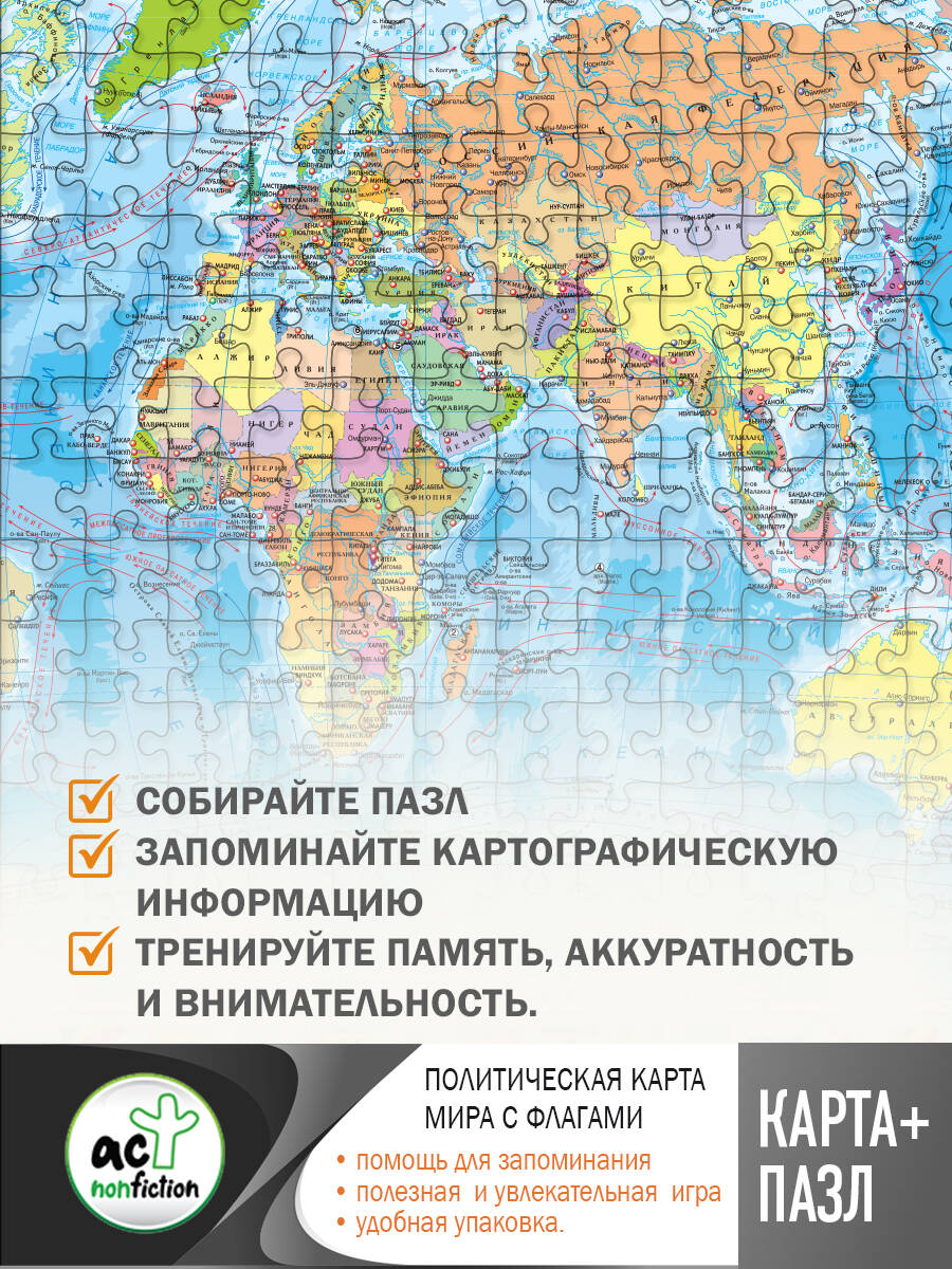 Аннотация: Карта+пазл "Политическая карта мира с флагами"