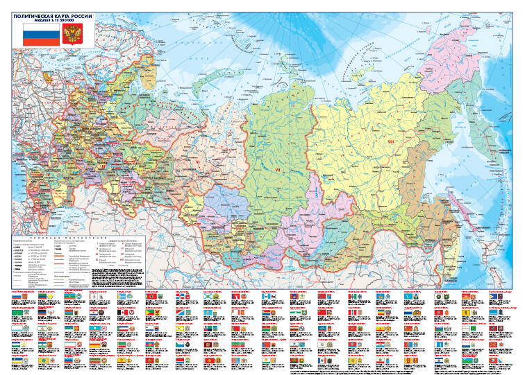 Карта России (в новых границах). Политическая. Физическая (мал)