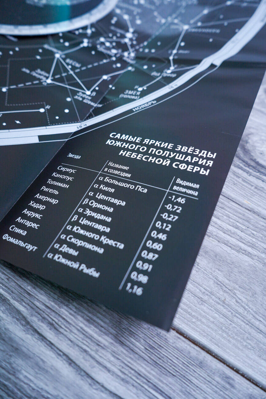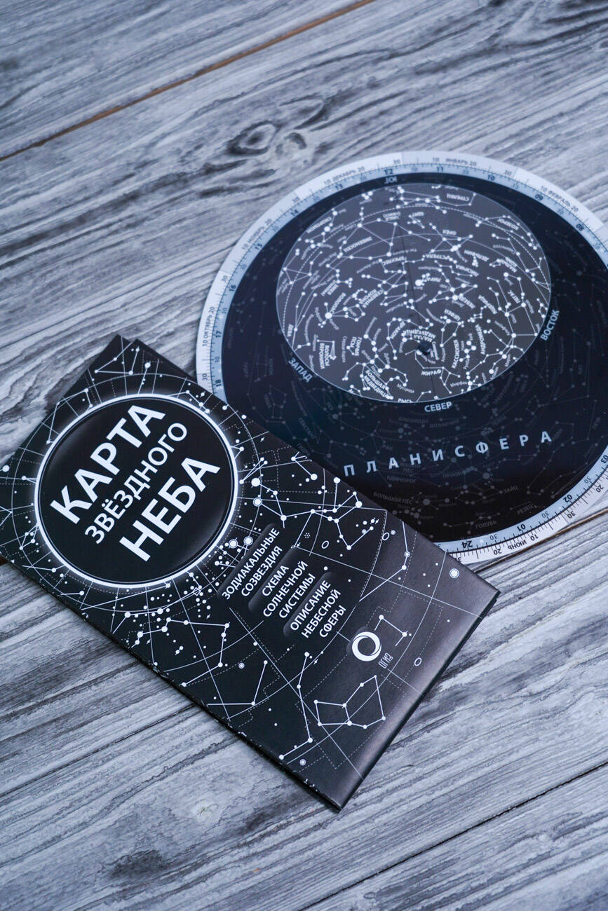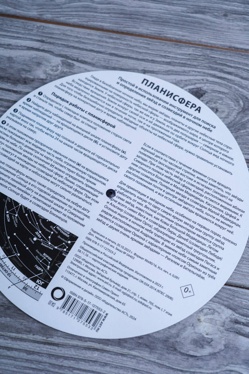 Комплект, состоящих из карты и планисферы. КАРТА ЗВЕЗДНОГО НЕБА: Складная двухсторонняя карта размером 790х640 мм. Звездное небо показано в виде карт северного и южного полушарий небесной сферы. Именно так ночное небо с мерцающими на нем галактиками, туманностями и звездными скоплениями можно увидеть с Северного и Южного полюсов Земли. Звезды на карте ранжированы по видимой звездной величине. Даны названия самых ярких звезд и условные очертания всех 88 созвездий. Приведены краткие сведения о Солнечной системе, небесной сфере, звездных координатах, эклиптике и зодиакальном круге. ПЛАНИСФЕРА ЗВЕЗДНОГО НЕБА: С ее помощью можно на любую дату и время суток определить, какие именно звезды и созвездия видны в небе, а также установить примерное положение Солнца в его годовом движении по эклиптике. На карте планисферы показаны звезды вплоть до 5-й видимой звездной величины в диапазоне склонения от +90 до -50 град. Чтобы увидеть участок ночного звездного неба, видимый в вашей местности, достаточно сориентироваться по сторонам света и, вращая подвижный диск, установить требуемые дату и время наблюдений.| Издательство | Издательство "АСТ" |