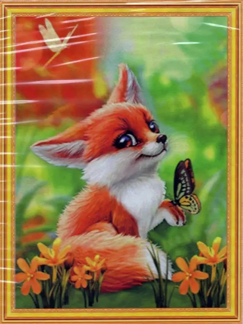 Картина 2 в 1. Алмазная мозаика и раскрашивание по номерам. Лисёнок, 40х50 см