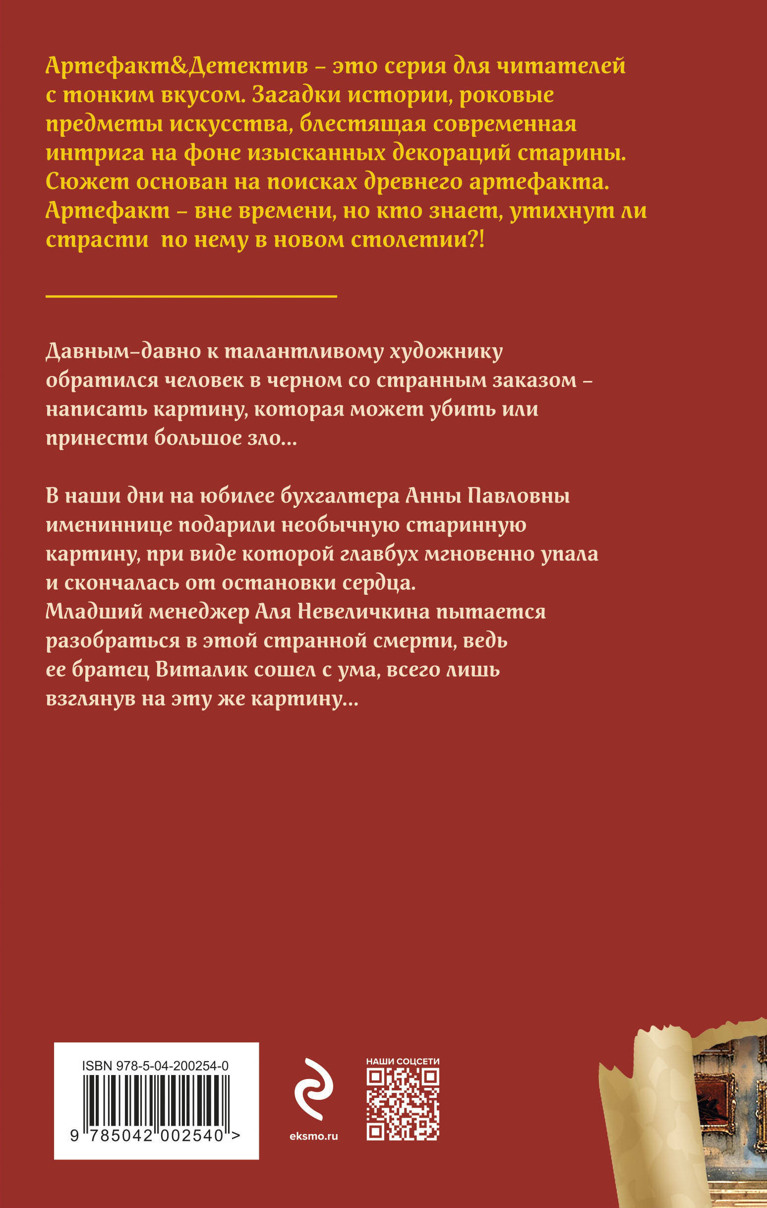 Давным-давно к талантливому художнику обратился человек в черном со странным заказом - написать картину, которая может убить или принести большое зло… В наши дни на юбилее бухгалтера Анны Павловны имениннице подарили необычную старинную картину, при виде на которую главбух мгновенно упала и скончалась от остановки сердца. Младший менеджер Аля Невеличкина пытается разобраться в этой странной смерти, ведь ее братец Виталик сошел с ума, всего лишь взглянув на эту же картину… Захватывающий детектив Наталии Александровой из серии «Артефакт&Детектив»!| Издательство | ООО "Издательство "Эксмо" |