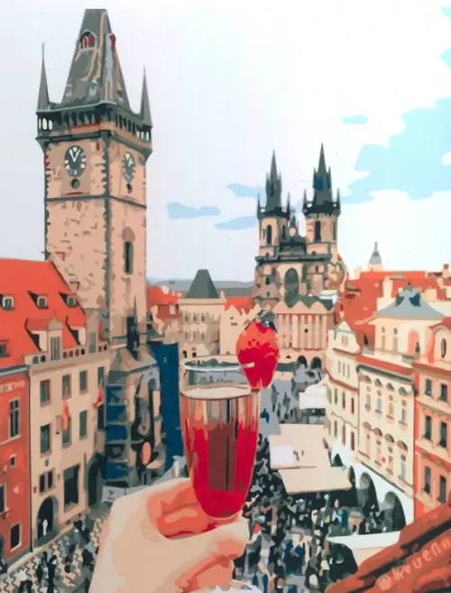 Картина дл раскрашивания по номерам по дереву. Прага, 30х40 см