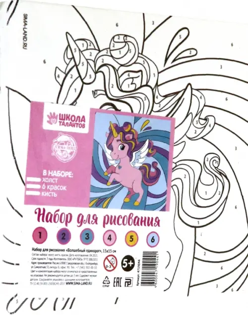 Картина по номерам. Волшебный единорог, 15x15 см