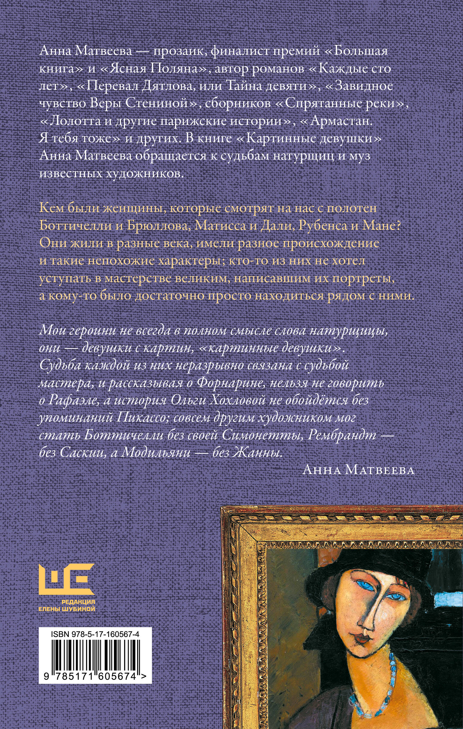 Новое издание бестселлера о музах великих художников, исправленное и дополненное. В книгу включены иллюстрации, воспроизводящие фотографии и картины известных художников: Боттичелли, Рембрандта, Модильяни и пр. Анна Матвеева - финалист премий «Большая книга» и «Ясная Поляна», лауреат премии им. Бажова, автор «Тотального диктанта» 2024.| Издательство | Издательство "АСТ" |