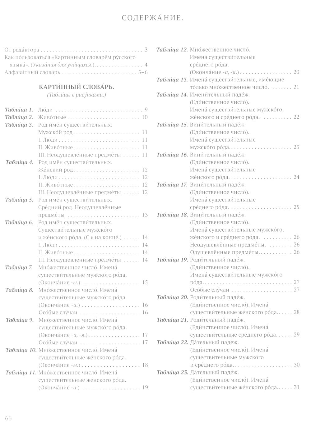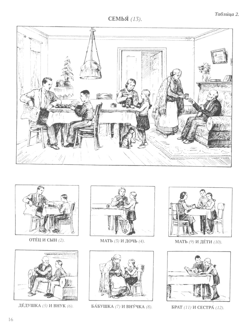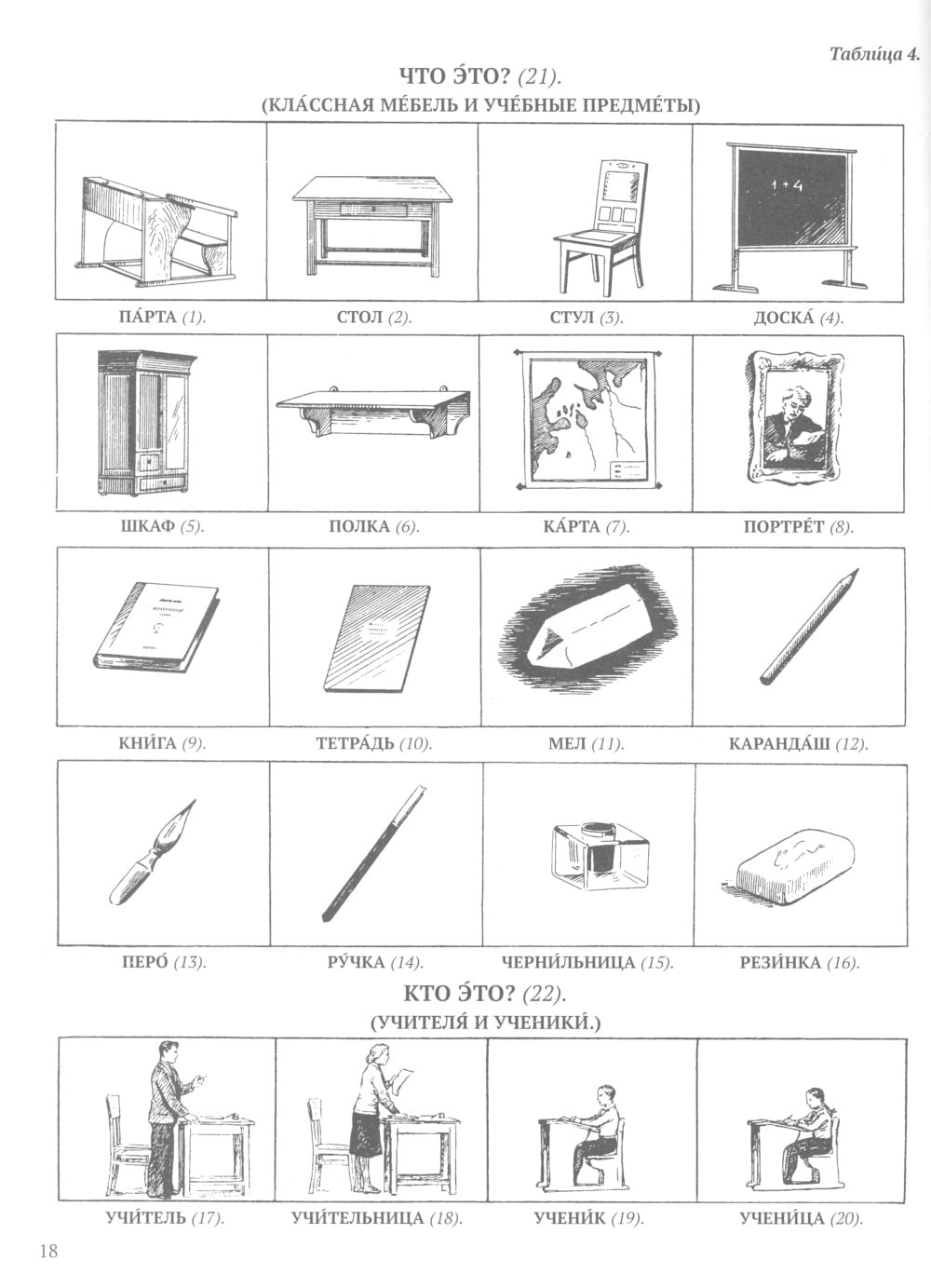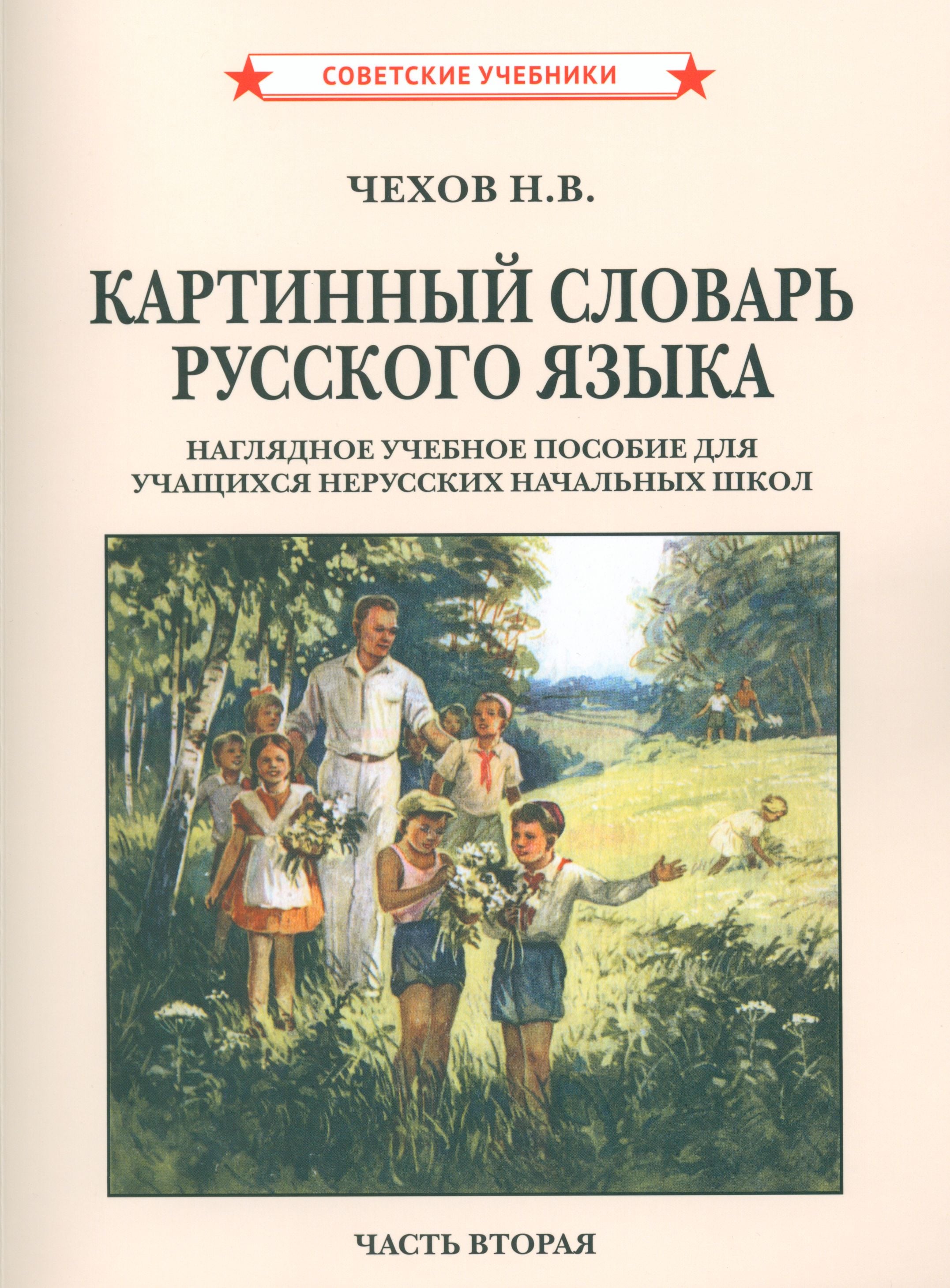 «Картинный словарь русского языка» Н.В. Чехова представляет собой наглядное пособие для учащихся нерусских начальных школ. Значение русских слов в нём объясняется не переводом на родной язык, а рисунками. Первая часть издания содержит таблицы с изображениями предметов, действий и качеств с названиями на русском языке и их алфавитный перечень. Предметы на таблицах расположены по тематическим группам: члены семьи, одежда и обувь, посуда, пища, орудия труда, домашние и дикие животные, строение тела человека и т. д. Отдельно даны таблицы с названиями действий и качеств. По изображению можно узнать значение слова, а по подписи - его название на русском языке. Вторая часть пособия включает в себя правила построения предложений и соединения слов в фразы. В качестве грамматических образцов выступает уже знакомая учащимся лексика, что облегчает процесс усвоения правил. Методические указания по использованию словаря содержат различные варианты работы с пособием. Издание будет полезно как школьникам, так и взрослым, изучающим русский язык самостоятельно.| Издательство | Советские учебники |
