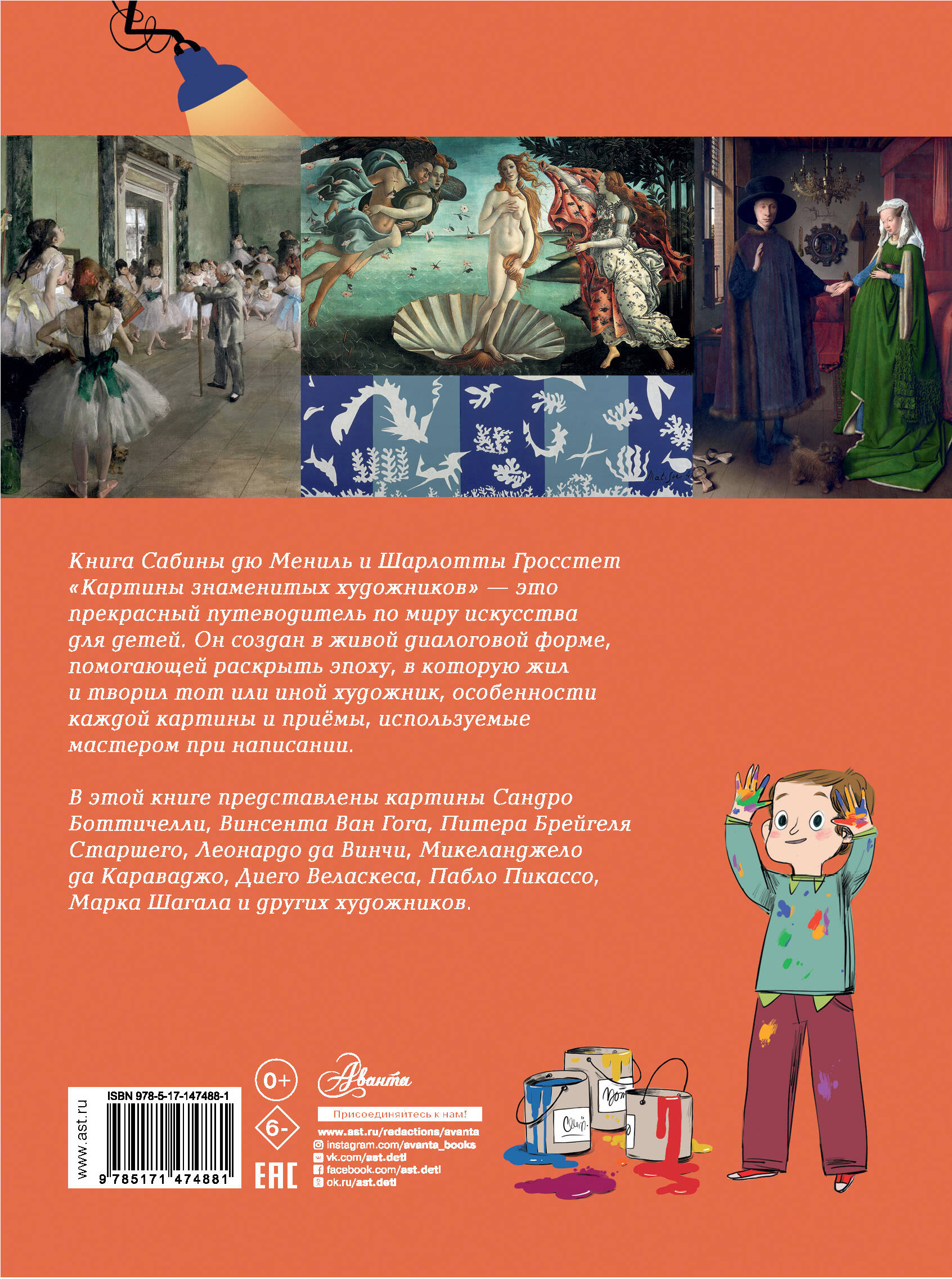 Книга Сабины дю Мениль и Шарлотты Гросстет "Картины знаменитых художников" - это прекрасный путеводитель по миру искусства для детей. Он создан в живой диалоговой форме, помогающей раскрыть эпоху, в которую жил и творил тот или иной художник, и особенности каждой картины. Этот путеводитель увлекательно и просто расскажет о судьбах художников и их знаменитых картин, о художественных техниках - сфумато, кьяроскуро и других, - о скрытых в картинах образах и приёмах, которые применялись художниками впервые. Для младшего школьного возраста.| Издательство | АСТ |