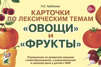 Аннотация: Карточки по лексическим темам "Овощи" и "Фрукты". Упражнения по развитию навыков словообразования, словоизменения и связной речи у детей с ОНР