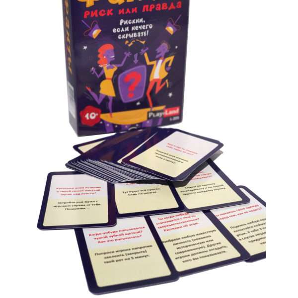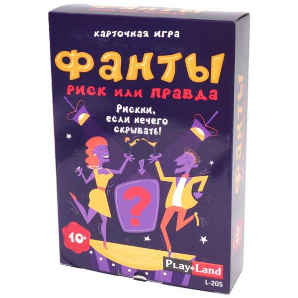 «Фанты. Риск или Правда» - это замечательная карточная игра о честности и отваге. Каждая карта разделена на 2 часта. На одной части - Риск, Вы найдете самые безбашенные задания. На второй части - Правда, Вас ждут самые интересные и откровенные вопросы. Играть можно от 2-х и более игроков. Игра идеально подойдет для самых разных компаний, как детских, так и взрослых. В этом комплекте собраны самые забавные задания и самые прямолинейные вопросы.