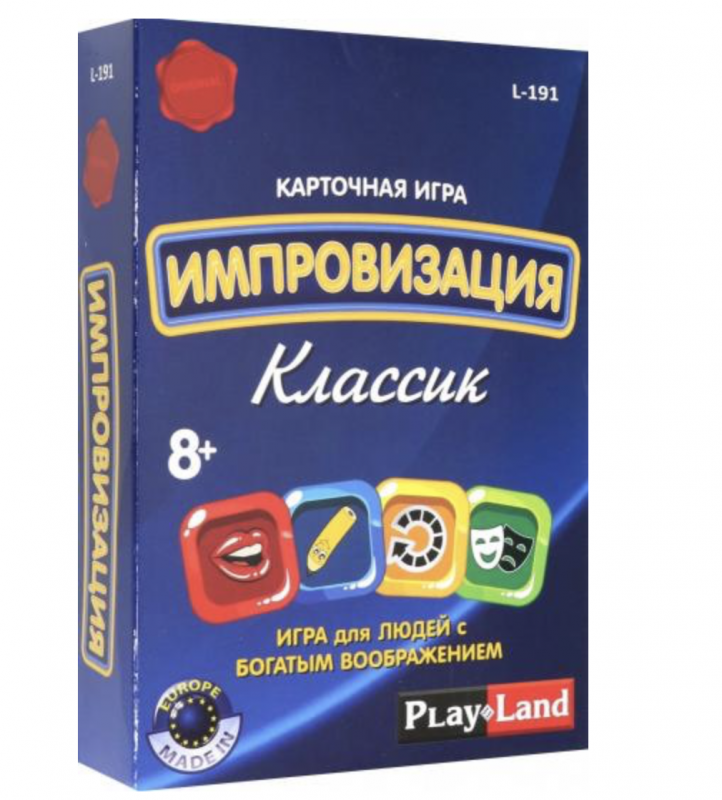 Карточная игра в ассоциации «Импровизация Классик» - более удобная и компактная версия одной из самых популярных и полюбившихся игр! В нее могут играть как дети школьного возраста во время семейных посиделок, так и взрослые в офисах и на вечеринках, ограничений нет. Правила всё также просты - нужно объяснять друг другу слова четырьмя способами: «описание», «пантомима», «рисование» и «сказать слово наоборот». Для каждого из четырех способов есть свои ограничения и правила. Способ зависит от того, на каком поле остановилась ваша фишка. Для успешной игры нужно знать синонимы и антонимы, быть максимально артистичным, уметь неплохо рисовать или просто быть самым шустрым и сообразительным. Часто правила игры требуют быстрой реакции, так что участвовать в игре придется активно и точно. Это игра отлично подойдет и для семейных посиделок, и для вечеринок! Цель игры - проявив максимальную артистичность и сообразительность, набрать наибольшее количество очков себе или своей команде! Игра развивает аналитическое, ассоциативное, образное и творческое мышление, помогает развить артистичность, реакцию и воображение! Времяпрепровождение обещает быть максимально интересным и захватывающим! Импровизируйте друзья!