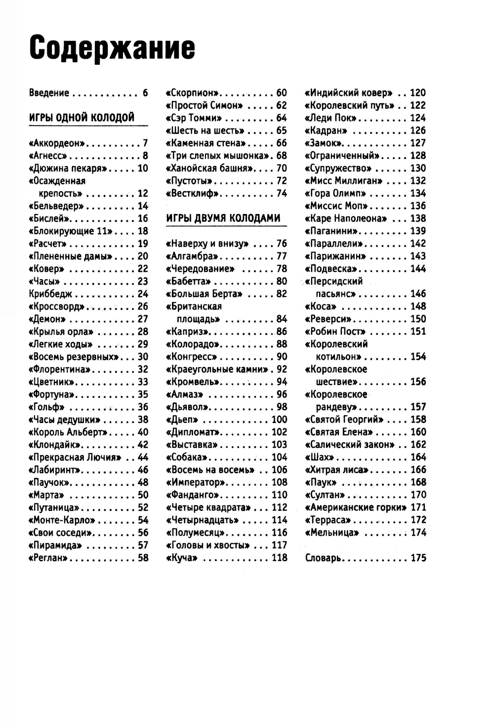 В книгу включено свыше пятидесяти наиболее интригующих и популярных в мире пасьянсов и игр, рассчитанных на одного игрока. Описания игр следуют по мере возрастания сложности, что упрощает процесс освоения мастерством. Все описания снабжены четкими рекомендациями, объяснениями правил, тактики и терминологии каждой игры.| Издательство | Центрполиграф |