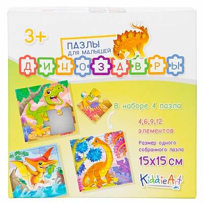 Картонный пазл 4в1 "Динозавры" (31 дет.) Картонные пазлы для малышей от KiddieArt - это отличный способ изучить окружающий его мир. Каждый из 4-х пазлов выполнен в виде картинки с уникальным дизайном того или иного персонажа (времени года, профессии, транспорт и прочее), объединенных единой темой. Размер каждого собранного пазла составляет 15x15 см. Мир древних динозавров многолик и может затрагивать множество особей древних рептилий. В каждом из 4-х картонных пазлов любопытный малыш сможет ознакомиться с одними из самых популярных представителей юрского периода: т-рекс, птеродактиль, брахиозавр, стегозавр. Подходит для детей от 3-х лет. Содержит 31 деталь.| Издательство | ЮНИТОЙС МСК ООО |