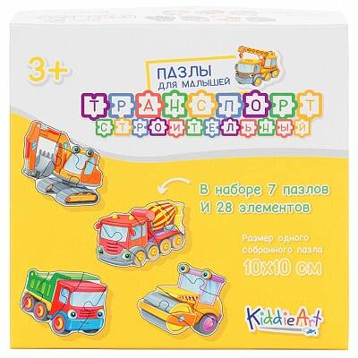 Строительный транспорт Картонные пазлы для малышей от KiddieArt - это отличный способ ребенку изучить окружающий мир. Каждый пазл выполнен в уникальном дизайне в виде персонажа (животных, фруктов, транспортных средств и прочее), собирается из нескольких деталей, с помощью которых по мере сборки можно увидеть всю головоломку размером 10x10см. Юный строитель будет в восторге от 7 собранных картонных фигурок строительного транспорта в виде бетономешалки, подъемного крана, самосвала, катка, экскаватора, бульдозера, трактора. У каждой машинки добродушные анимированные глазки. Подходит для детей от 3-х лет. Содержит 28 деталей.| Издательство | ЮНИТОЙС МСК ООО |