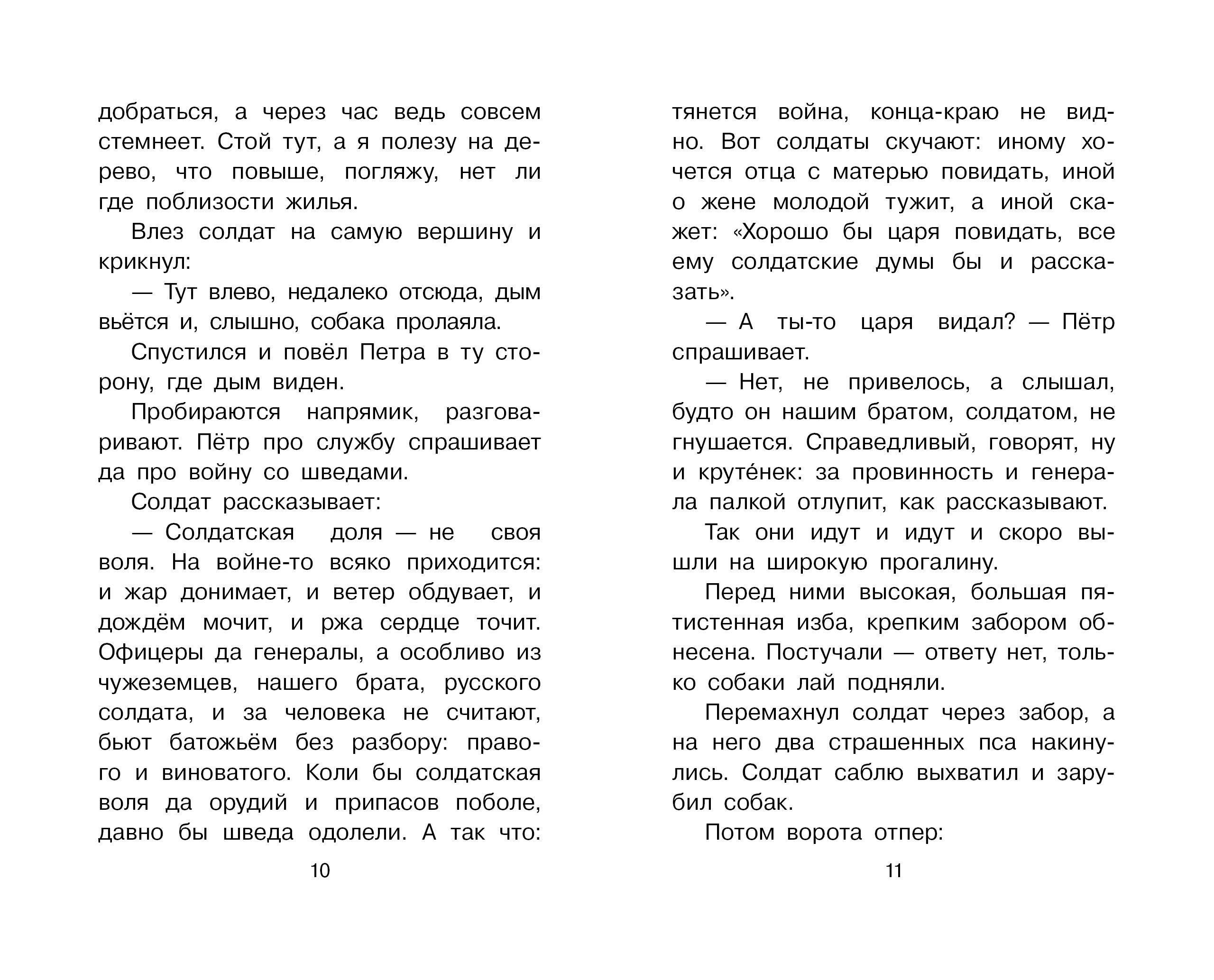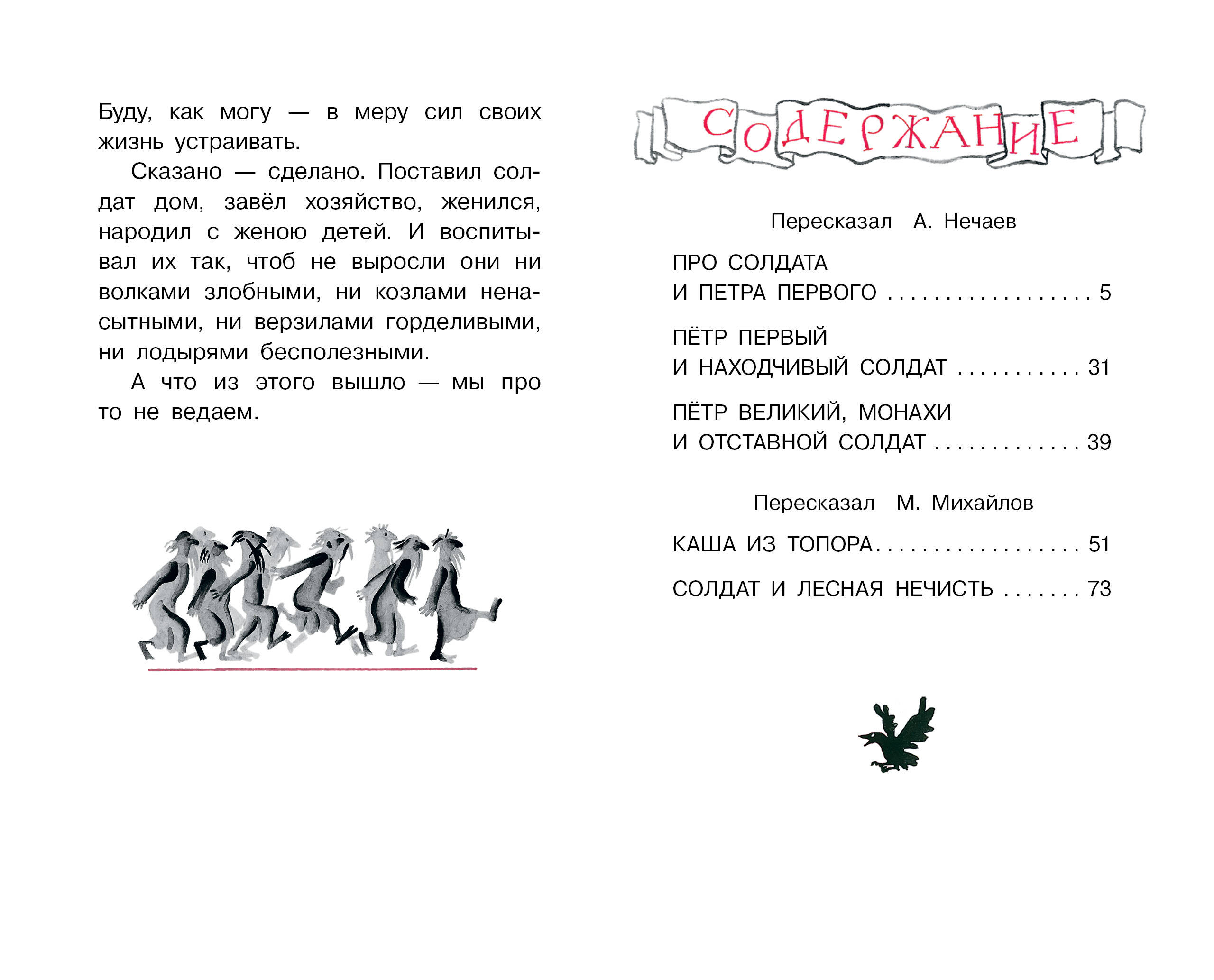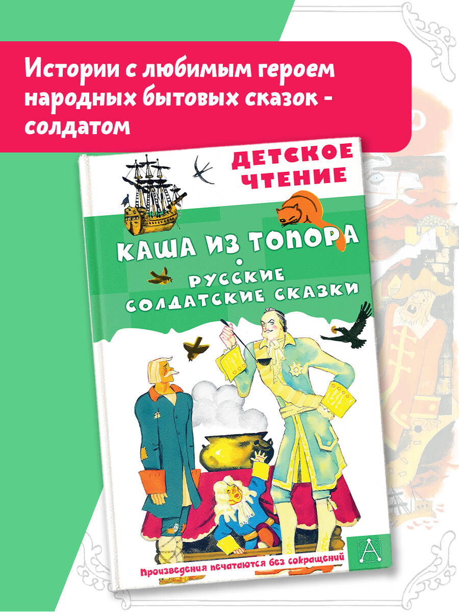 Находчивый, хитрый, ловкий и неунывающий - вот он какой, солдат из русских народных сказок. Он и службу исправно несёт, а ещё с лёгкостью кашу из топора варит, и разбойников вокруг пальца обводит, и отгадывает загадки самого царя Петра Первого! Казалось бы, чем ещё этот герой может удивить читателя? Но, как говорится, есть ещё порох в пороховницах, вот и у нашего солдата есть чем ещё поразить читателя. Ему предстоит с лесной нечистью сразиться и колдовскую печать с заброшенного царства-государства снять.| Издательство | Издательство "АСТ" |