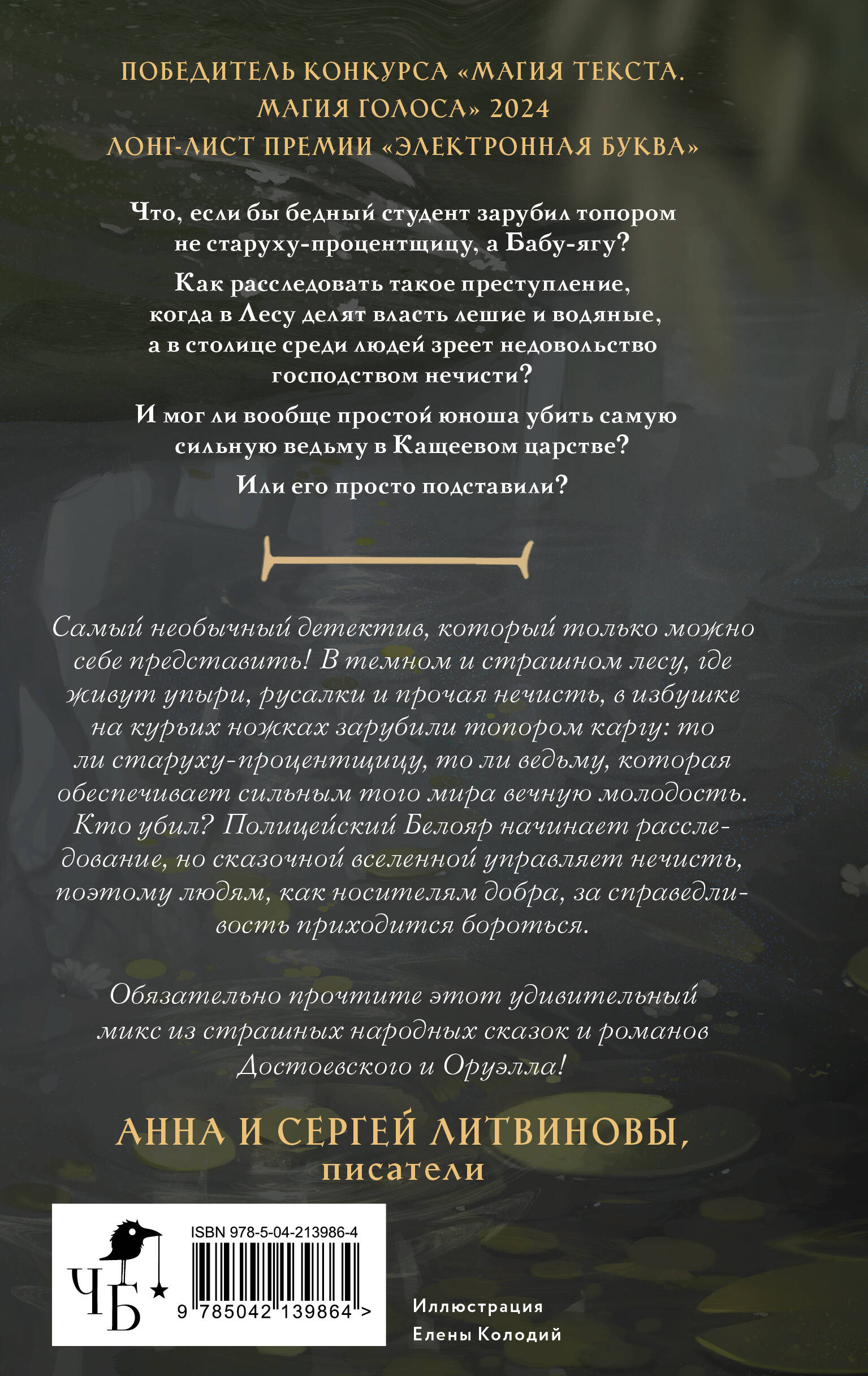 Что, если бы бедный студент зарубил топором не старуху-процентщицу, а Бабу Ягу? Как расследовать такое преступление, когда в Лесу делят власть лешие и водяные, а в столице среди людей зреет недовольство господством нечисти? И мог ли вообще простой юноша убить самую сильную ведьму в Кащеевом царстве? Или его просто подставили? Мрачный детектив в декорациях сказочного леса. Ретеллинг романа Фёдора Достоевского «Преступление и наказание» в сеттинге славянского фэнтези! Человек сталкивается со сказочными созданиями, только вот в их буднях мало сказочного: убийства, интриги и козни друг против друга, социальное неравенство и суровая реальность, в которой у каждого создания свои тайны. Мир Кащеева царства вдохновлён Россией XIX века. Иллюстрация на переплёте Елены Колодий (йен).| Издательство | ООО "Издательство "Эксмо" |